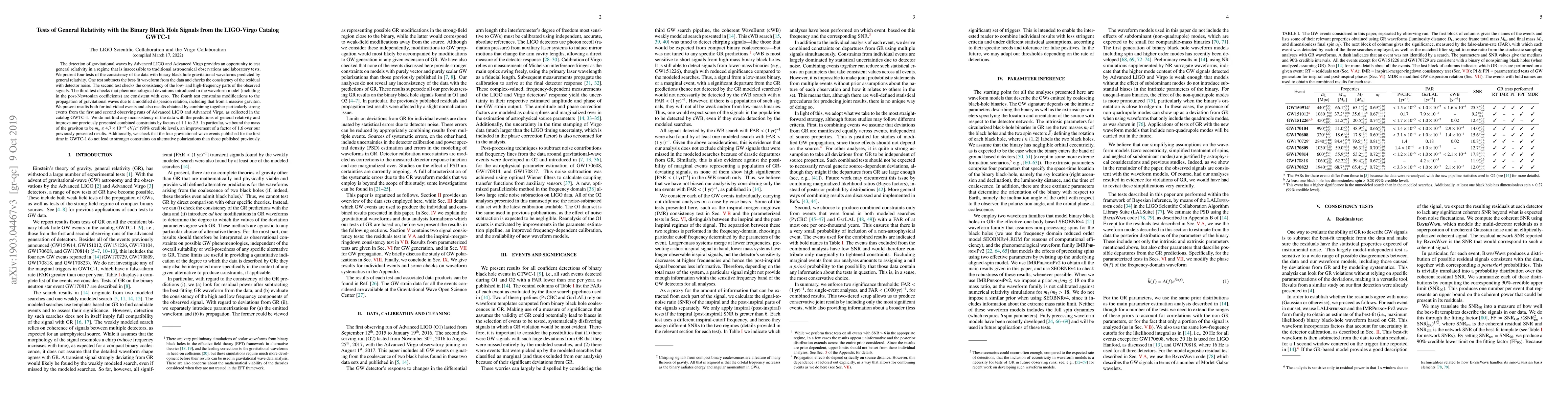 The research methodology involved analyzing gravitational wave signals from binary black hole mergers detected by Advanced LIGO and Advanced Virgo during their first and second observing runs, comparing these signals with general relativity predictions.