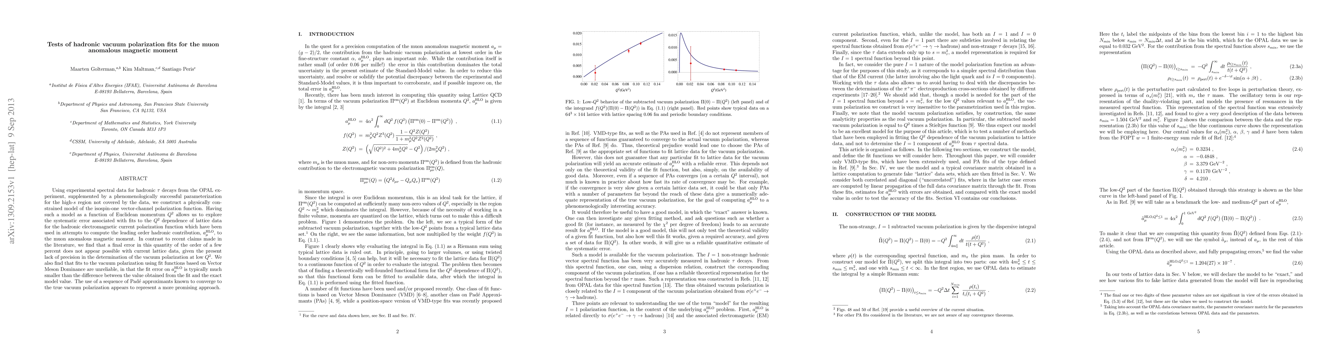Using experimental spectral data for hadronic tau decays from the OPAL experiment, supplemented by a phenomenologically successful parameterization for the high-s region not covered by the data, we construct a physically constrained model of the isospin-one vector-channel polarization function. Having such a model as a function of Euclidean momentum Q^2 allows us to explore the systematic error associated with fits to the Q^2 dependence of lattice data for the hadronic electromagnetic current polarization function which have been used in attempts to compute the leading order hadronic contribution, a_\mu^HLO, to the muon anomalous magnetic moment. In contrast to recent claims made in the literature, we find that a final error in this quantity of the order of a few percent does not appear possible with current lattice data, given the present lack of precision in the determination of the vacuum polarization at low Q^2. We also find that fits to the vacuum polarization using fit functions based on Vector Meson Dominance are unreliable, in that the fit error on a_\mu^HLO is typically much smaller than the difference between the value obtained from the fit and the exact model value. The use of a sequence of Pade approximants known to converge to the true vacuum polarization appears to represent a more promising approach.