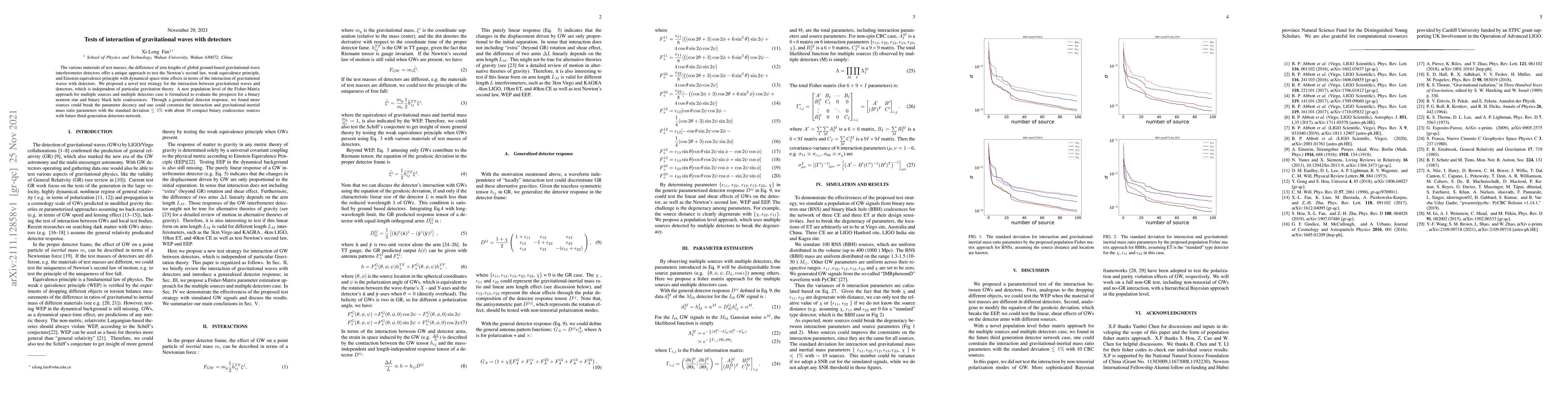 The paper presents a generalized detector response and a population-level Fisher matrix approach to test the interaction between gravitational waves and detectors, enabling constraints on interaction and gravitational-inertial mass ratio parameters.