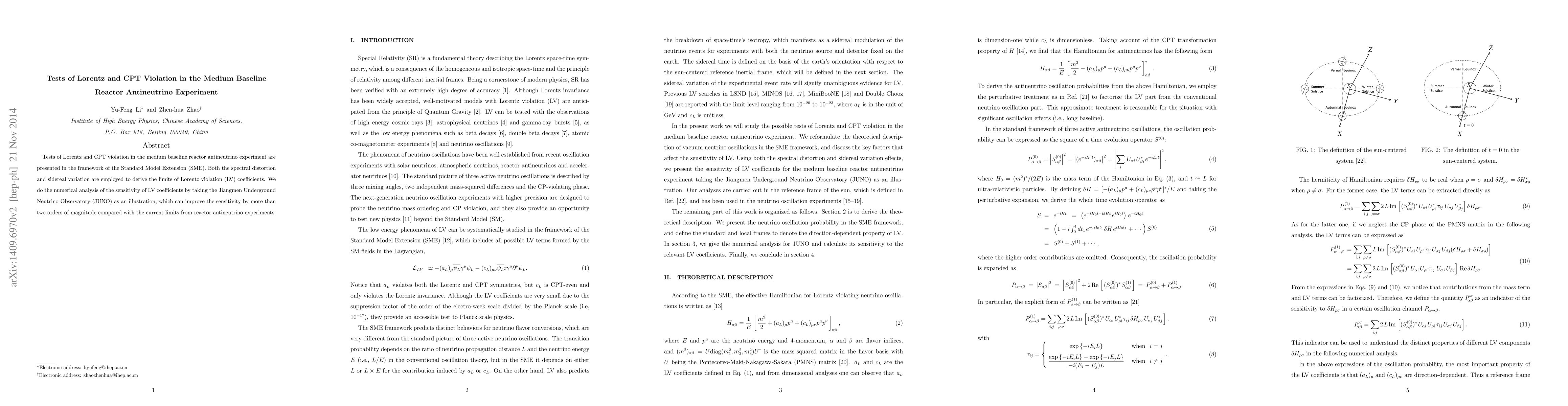 This paper investigates Lorentz and CPT violation in a medium baseline reactor antineutrino experiment using the Standard Model Extension (SME). The study employs spectral distortion and sidereal variation to derive limits on Lorentz violation coefficients, and demonstrates that the Jiangmen Underground Neutrino Observatory (JUNO) could enhance sensitivity by over two orders of magnitude compared to existing reactor antineutrino experiments.