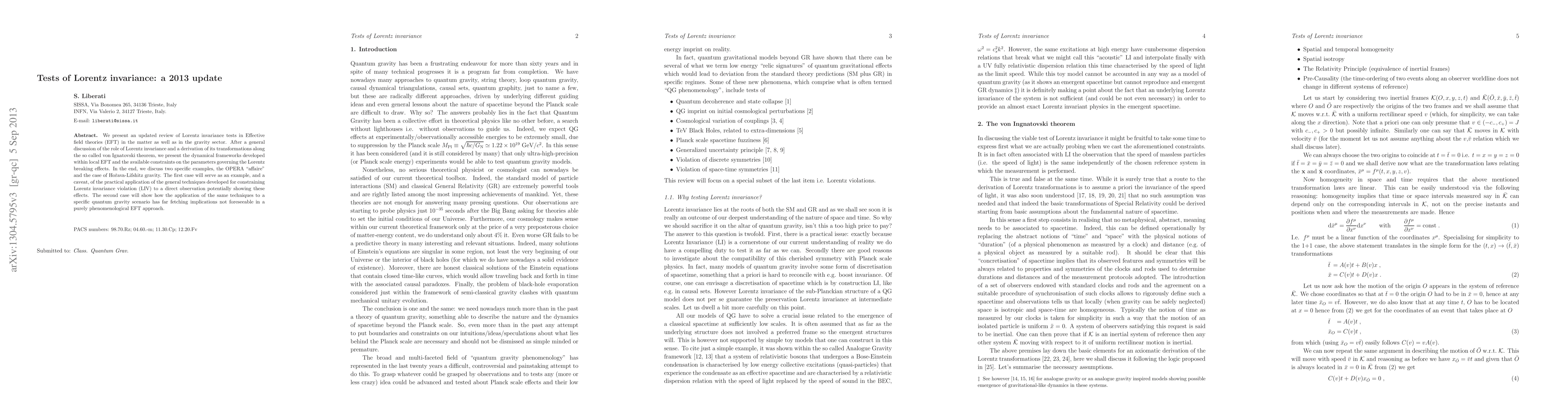 This paper provides an updated review of tests for Lorentz invariance within Effective Field Theories, discussing both matter and gravity sectors. It highlights practical applications and implications of these tests, exemplified by the OPERA experiment and Hořava-Lifshitz gravity, to illustrate the constraints and implications of Lorentz invariance violations.