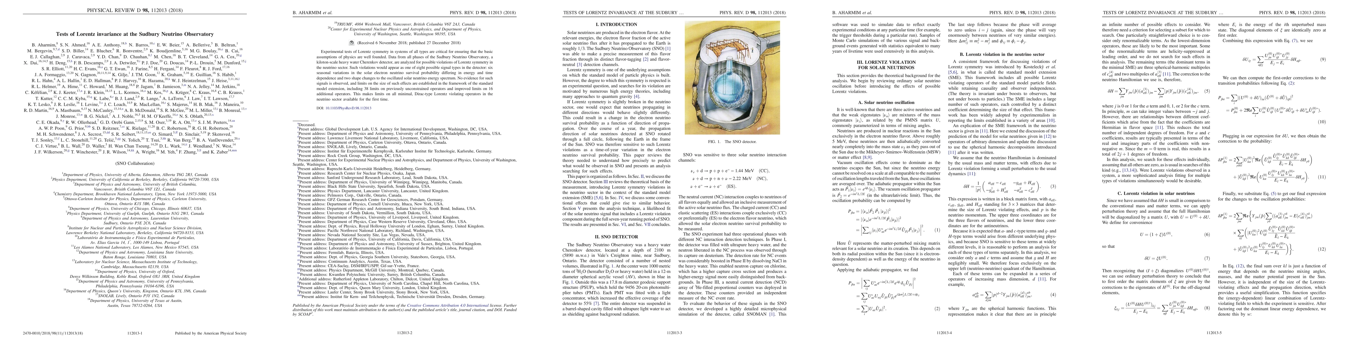 Experimental tests of Lorentz symmetry in systems of all types are critical for ensuring that the basic assumptions of physics are well-founded. Data from all phases of the Sudbury Neutrino Observatory, a kiloton-scale heavy water Cherenkov detector, are analyzed for possible violations of Lorentz symmetry in the neutrino sector. Such violations would appear as one of eight possible signal types in the detector: six seasonal variations in the solar electron neutrino survival probability differing in energy and time dependence, and two shape changes to the oscillated solar neutrino energy spectrum. No evidence for such signals is observed, and limits on the size of such effects are established in the framework of the Standard Model Extension, including 40 limits on perviously unconstrained operators and improved limits on 15 additional operators. This makes limits on all minimal, Dirac-type Lorentz violating operators in the neutrino sector available for the first time.
