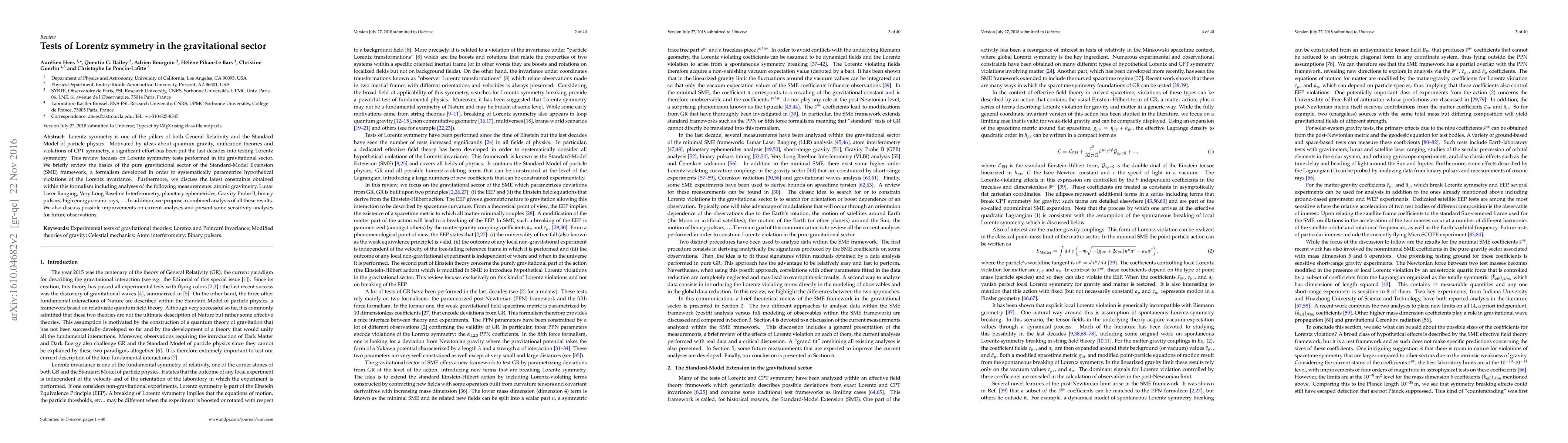 Lorentz symmetry is one of the pillars of both General Relativity and the Standard Model of particle physics. Motivated by ideas about quantum gravity, unification theories and violations of CPT symmetry, a significant effort has been put the last decades into testing Lorentz symmetry. This review focuses on Lorentz symmetry tests performed in the gravitational sector. We briefly review the basics of the pure gravitational sector of the Standard-Model Extension (SME) framework, a formalism developed in order to systematically parametrize hypothetical violations of the Lorentz invariance. Furthermore, we discuss the latest constraints obtained within this formalism including analyses of the following measurements: atomic gravimetry, Lunar Laser Ranging, Very Long Baseline Interferometry, planetary ephemerides, Gravity Probe B, binary pulsars, high energy cosmic rays,... In addition, we propose a combined analysis of all these results. We also discuss possible improvements on current analyses and present some sensitivity analyses for future observations.