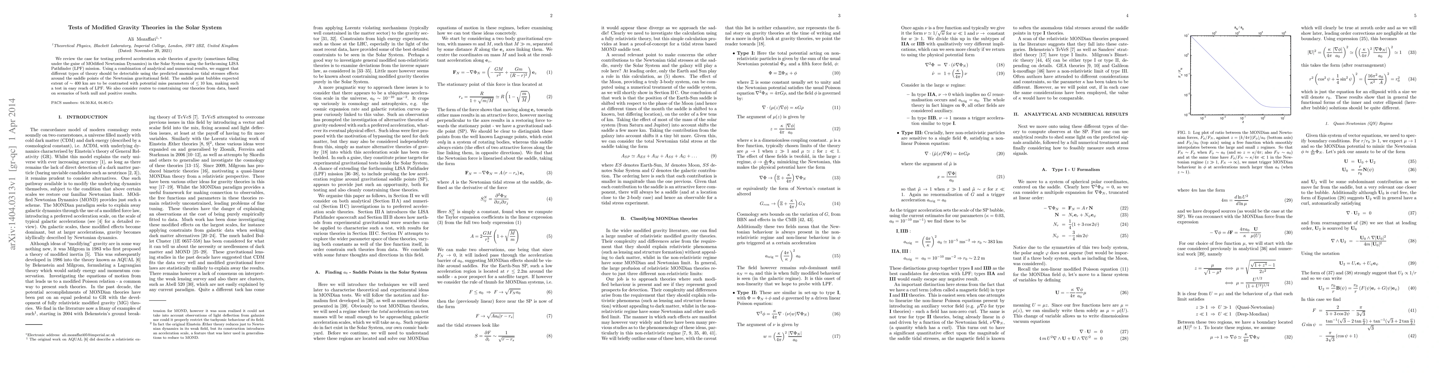 This paper reviews the potential of the LISA Pathfinder mission to test modified gravity theories in the Solar System, focusing on detecting anomalous tidal stresses around the saddle points of the Newtonian gravitational field. The study suggests that the mission's precision can detect these effects, contrasting the expected bubble size of ~400 km with potential miss parameters of ≤10 km.