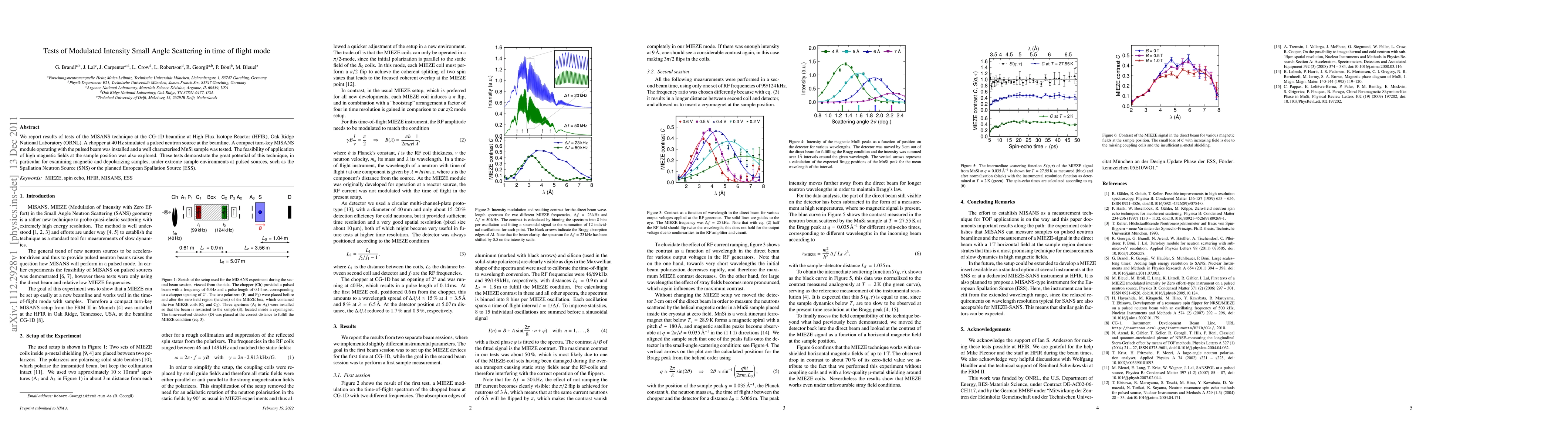 This paper reports on the successful testing of Modulated Intensity Small Angle Neutron Scattering (MISANS) at the CG-1D beamline of the High Flux Isotope Reactor, demonstrating its potential for studying magnetic and depolarizing samples under extreme conditions, with implications for future neutron sources like the Spallation Neutron Source and the European Spallation Source.