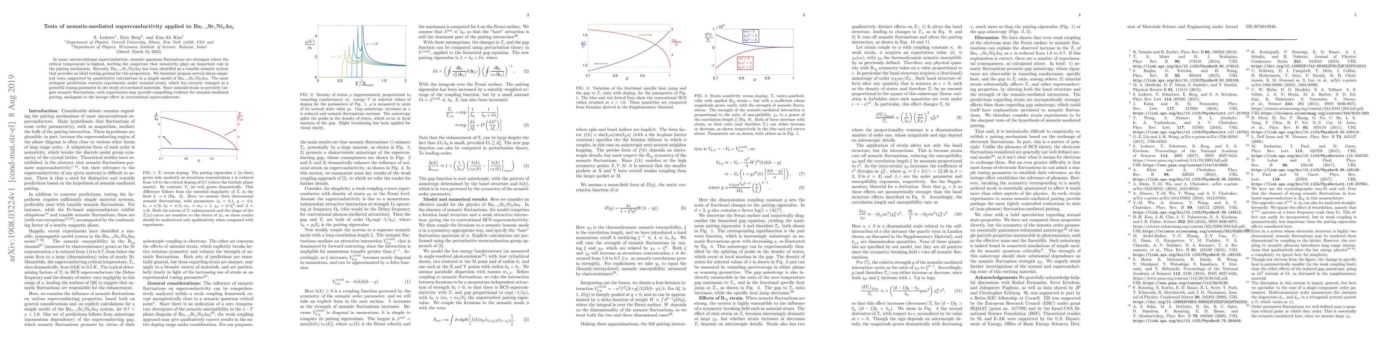This research investigates the role of nematic quantum fluctuations in the superconductivity of Ba$_{1-x}$Sr$_x$Ni$_2$As$_2$ by proposing sharp empirical tests and quantitative calculations. Experiments under uniaxial strain are suggested as a powerful method to gather evidence for nematic-mediated superconductivity.