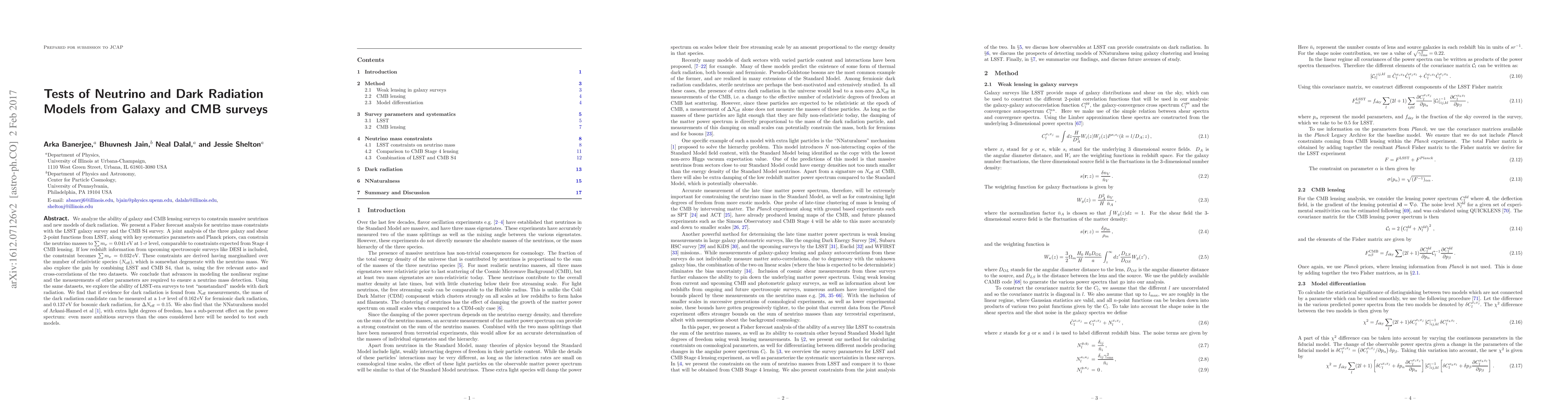 This paper assesses the constraints on neutrino mass and dark radiation models using galaxy and CMB lensing surveys. It finds that LSST and CMB S4 surveys can constrain neutrino masses to $\sum m_\nu = 0.041\,$eV, with further improvements from DESI data. It also explores the potential to detect dark radiation, estimating masses of $0.162\,$eV for fermionic and $0.137\,$eV for bosonic dark radiation under certain conditions.