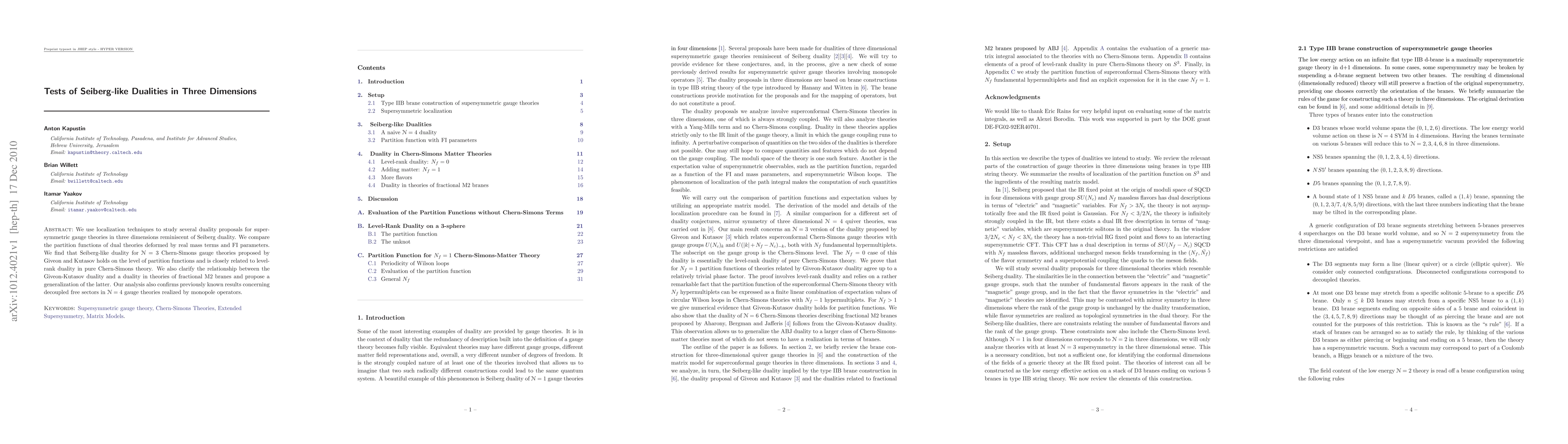 We use localization techniques to study several duality proposals for supersymmetric gauge theories in three dimensions reminiscent of Seiberg duality. We compare the partition functions of dual theories deformed by real mass terms and FI parameters. We find that Seiberg-like duality for N=3 Chern-Simons gauge theories proposed by Giveon and Kutasov holds on the level of partition functions and is closely related to level-rank duality in pure Chern-Simons theory. We also clarify the relationship between the Giveon-Kutasov duality and a duality in theories of fractional M2 branes and propose a generalization of the latter. Our analysis also confirms previously known results concerning decoupled free sectors in N=4 gauge theories realized by monopole operators.