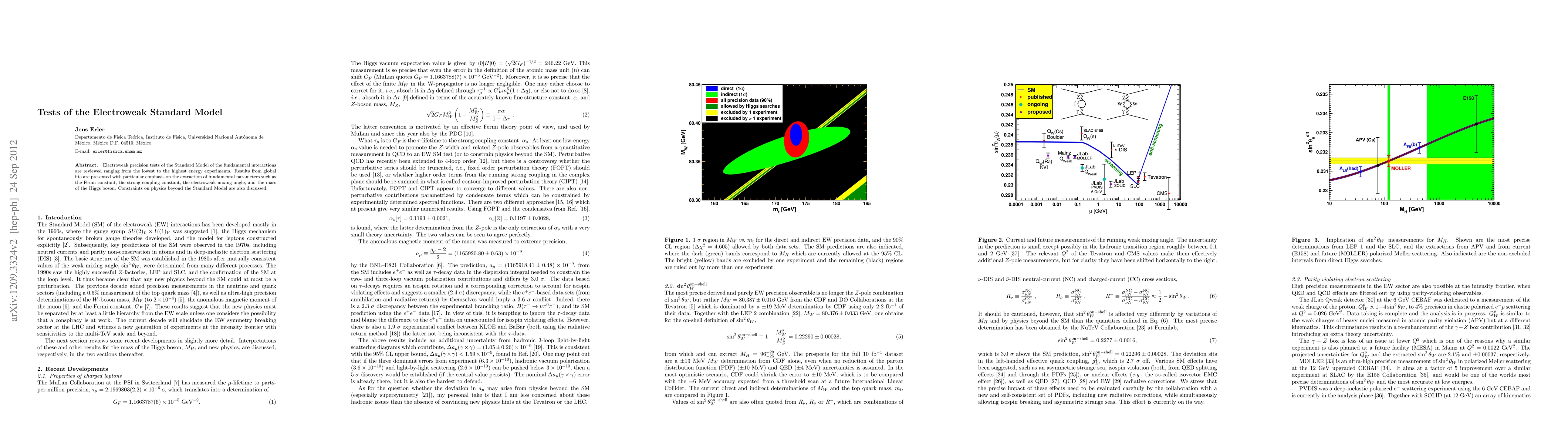 This paper reviews electroweak precision tests of the Standard Model, presenting results from global fits that extract fundamental parameters like the Fermi constant and the Higgs boson mass, while also discussing constraints on physics beyond the Standard Model.