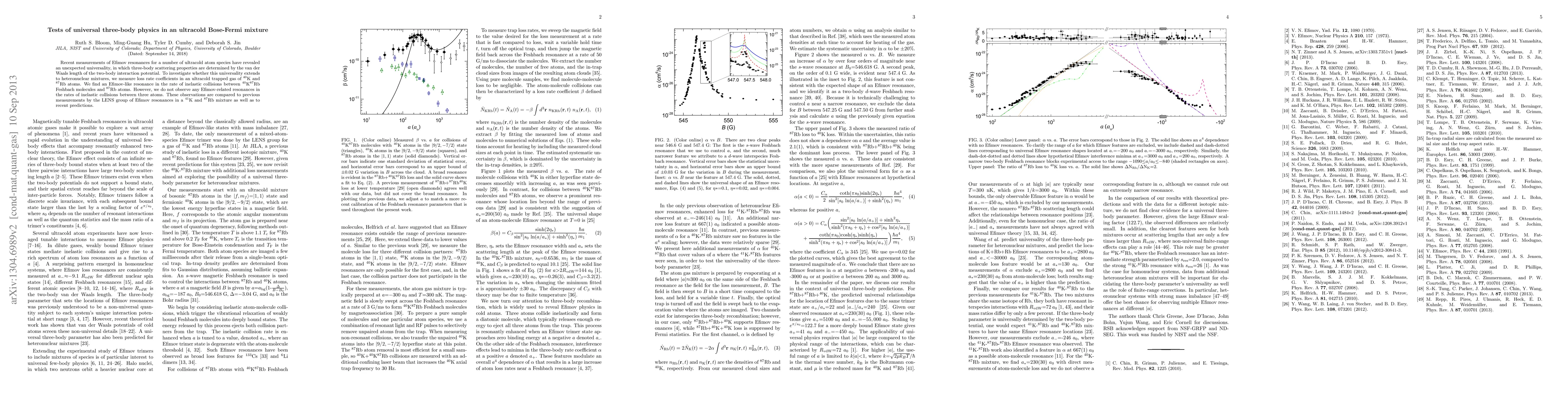 Recent measurements of Efimov resonances in a number of ultracold atom species have revealed an unexpected universality, in which three-body scattering properties are determined by the van der Waals length of the two-body interaction potential. To investigate whether this universality extends to heteronuclear mixtures, we measure loss rate coefficients in an ultracold trapped gas of $^{40}$K and $^{87}$Rb atoms. We find an Efimov-like resonance in the rate of inelastic collisions between $^{40}$K$^{87}$Rb Feshbach molecules and $^{87}$Rb atoms. However, we do not observe any Efimov-related resonances in the rates of inelastic collisions between three atoms. These observations are compared to previous measurements by the LENS group of Efimov resonances in a $^{41}$K and $^{87}$Rb mixture as well as to recent predictions.