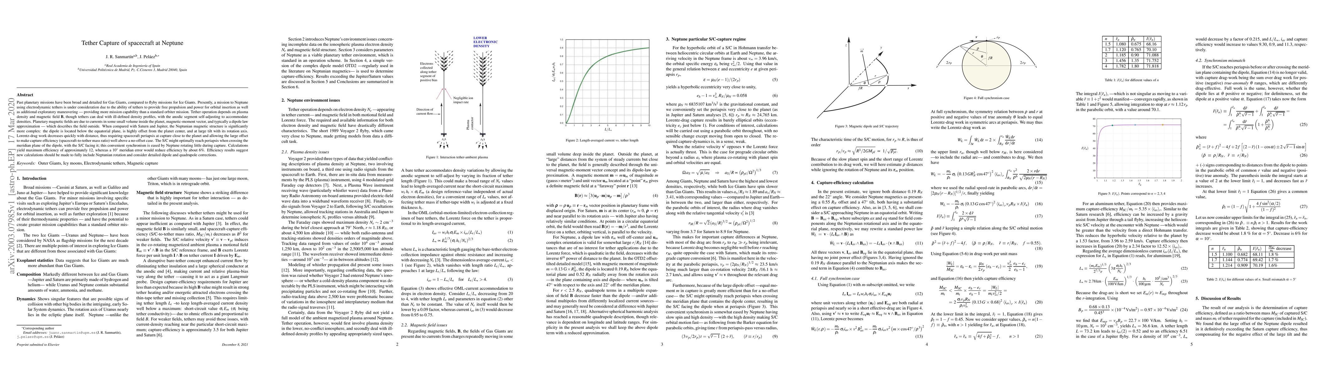 This paper explores the feasibility of using electrodynamic tethers for spacecraft capture and propulsion at Neptune, highlighting their potential for free propulsion and power during orbital insertion. The study finds that Neptune's complex magnetic field, with its offset dipole, can significantly enhance capture efficiency, though precise alignment and consideration of rotational effects are crucial for optimal performance.