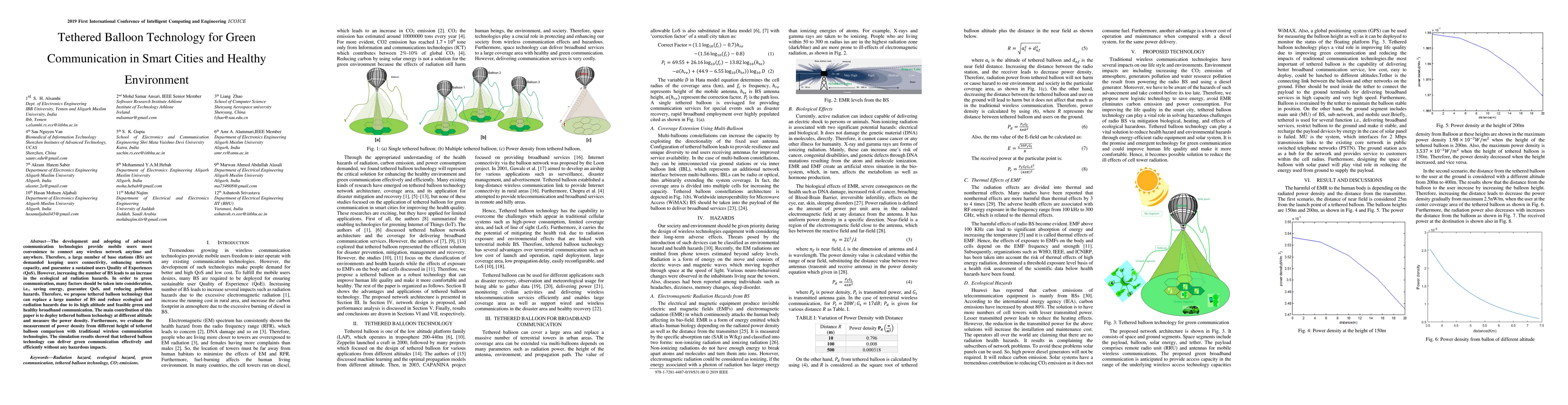 The development and adopting of advanced communication technologies provide mobile users more convenience to connect any wireless network anytime and anywhere. Therefore, a large number of base stations (BS) are demanded keeping users connectivity, enhancing network capacity, and guarantee a sustained users Quality of Experiences (QoS). However, increasing the number of BS leads to an increase in the ecological ad radiation hazards. In order to green communication, many factors should be taken into consideration, i.e., saving energy, guarantee QoS, and reducing pollution hazards. Therefore, we propose tethered balloon technology that can replace a large number of BS and reduce ecological and radiation hazards due to its high altitude and feasible green and healthy broadband communication. The main contribution of this paper is to deploy tethered balloon technology at different altitude and measure the power density. Furthermore, we evaluate the measurement of power density from different height of tethered balloon comparison with traditional wireless communication technologies. The simulation results showed that tethered balloon technology can deliver green communication effectively and efficiently without any hazardous impacts.