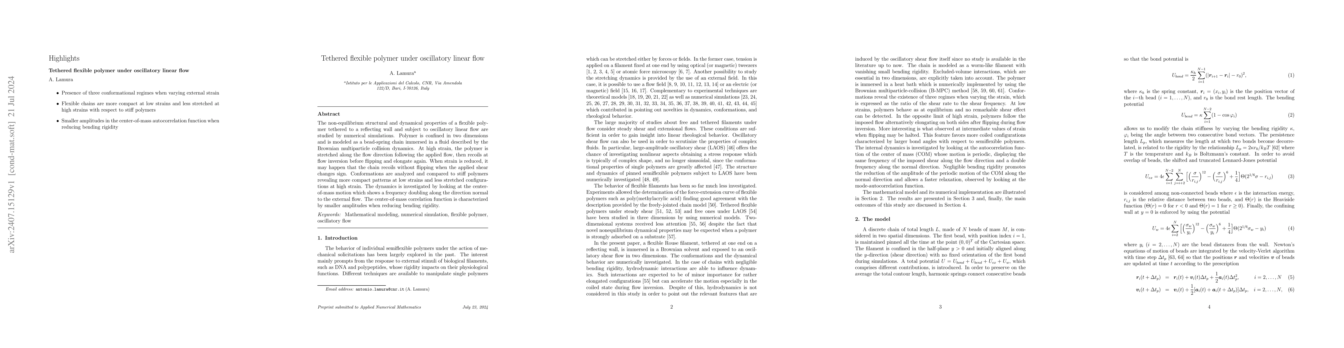 The paper presents a detailed numerical analysis of a flexible polymer's response to oscillatory linear flow using the Brownian multiparticle collision dynamics, providing insights into its structural and dynamical properties across different strain regimes.
