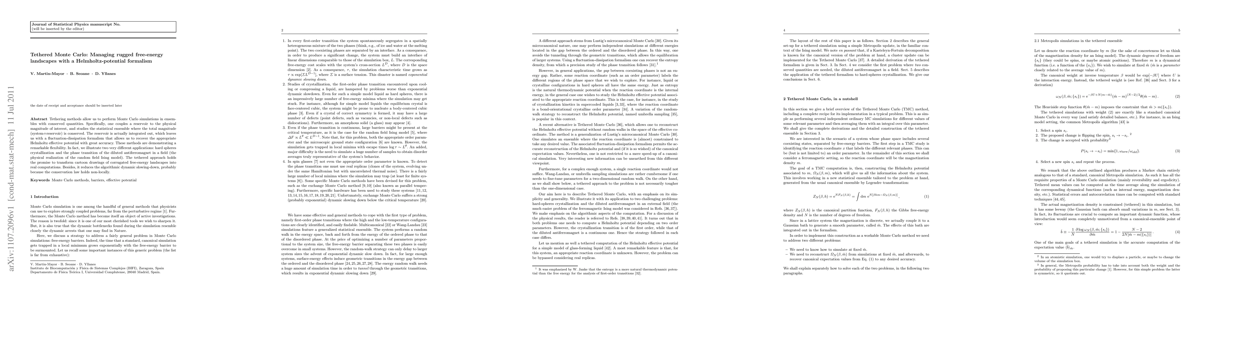 Tethering methods allow us to perform Monte Carlo simulations in ensembles with conserved quantities. Specifically, one couples a reservoir to the physical magnitude of interest, and studies the statistical ensemble where the total magnitude (system+reservoir) is conserved. The reservoir is actually integrated out, which leaves us with a fluctuation-dissipation formalism that allows us to recover the appropriate Helmholtz effective potential with great accuracy. These methods are demonstrating a remarkable flexibility. In fact, we illustrate two very different applications: hard spheres crystallization and the phase transition of the diluted antiferromagnet in a field (the physical realization of the random field Ising model). The tethered approach holds the promise to transform cartoon drawings of corrugated free-energy landscapes into real computations. Besides, it reduces the algorithmic dynamic slowing-down, probably because the conservation law holds non-locally.