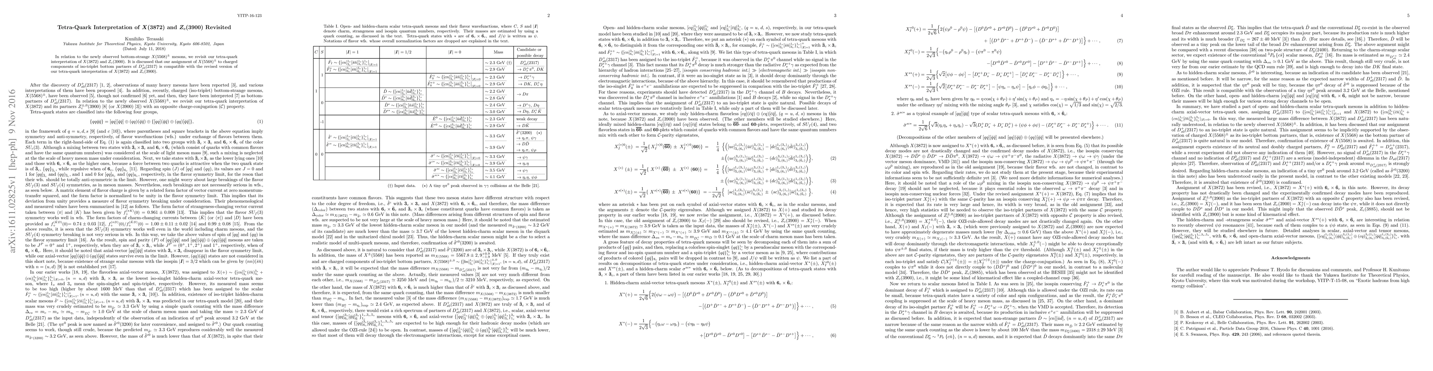 In relation to the newly observed bottom-strange X^{+,-}(5568) mesons, we revisit our tetra-quark interpretation of X(3872) and Z_c(3900). It is discussed that our assignment of X^{+,-}(5568) to charged components of iso-triplet bottom partners of D_{s0}^+(2317) is compatible with the revised version of our tetra-quark interpretation of X(3872) and Z_c(3900).