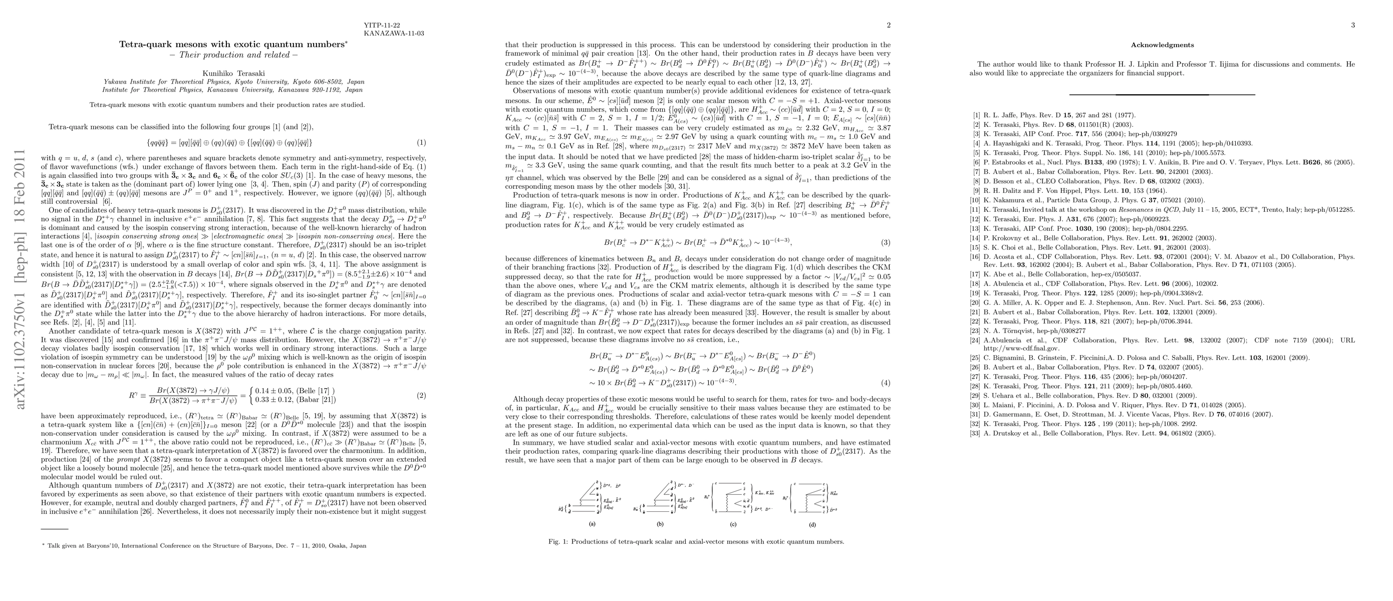 Tetra-quark mesons with exotic quantum numbers and their production rates are studied.