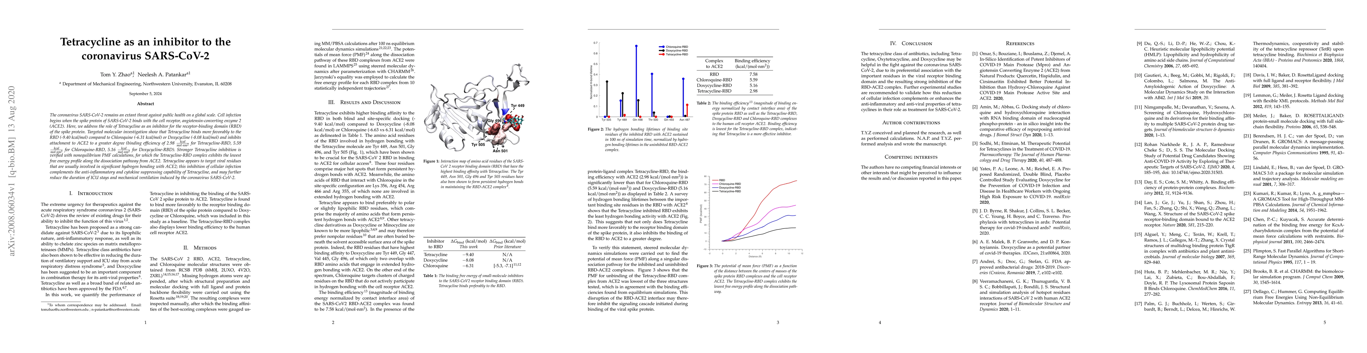 A study found that Tetracycline is a more effective inhibitor of the SARS-CoV-2 virus than Chloroquine or Doxycycline, blocking attachment to cell receptors.