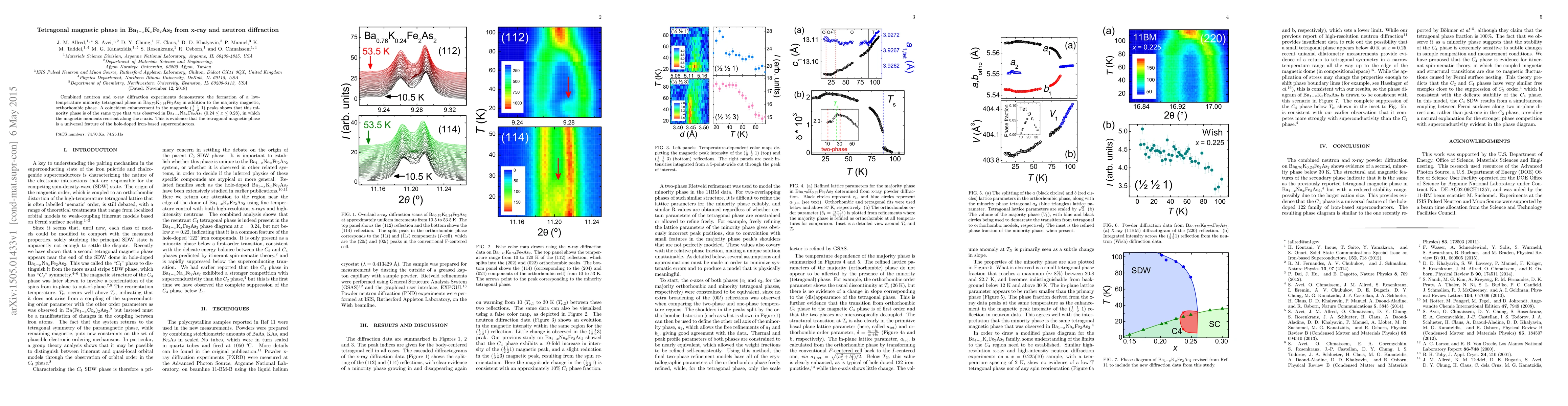 Combined neutron and x-ray diffraction experiments demonstrate the formation of a low-temperature minority tetragonal phase in Ba$_{0.76}$K$_{0.24}$Fe$_2$As$_2$ in addition to the majority magnetic, orthorhombic phase. A coincident enhancement in the magnetic ($\frac{1}{2}$ $\frac{1}{2}$ 1) peaks shows that this minority phase is of the same type that was observed in Ba$_{1-x}$Na$_x$Fe$_2$As$_2$ ($0.24 \leq x \leq 0.28$), in which the magnetic moments reorient along the $c$-axis. This is evidence that the tetragonal magnetic phase is a universal feature of the hole-doped iron-based superconductors.