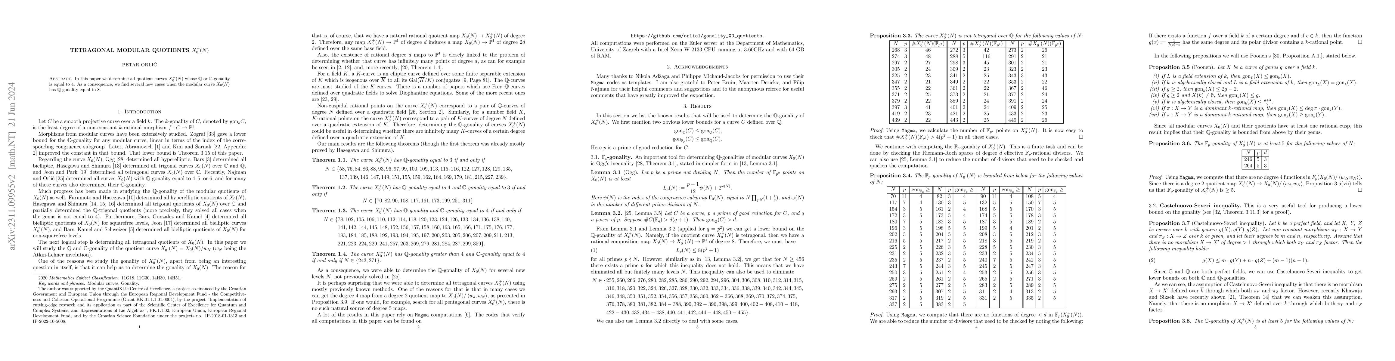 This paper identifies all tetragonal modular quotient curves $X_0^+(N)$ with $\mathbb{Q}$ or $\mathbb{C}$-gonality of $4$, and discovers new instances where the modular curve $X_0(N)$ exhibits $\mathbb{Q}$-gonality of $8$.