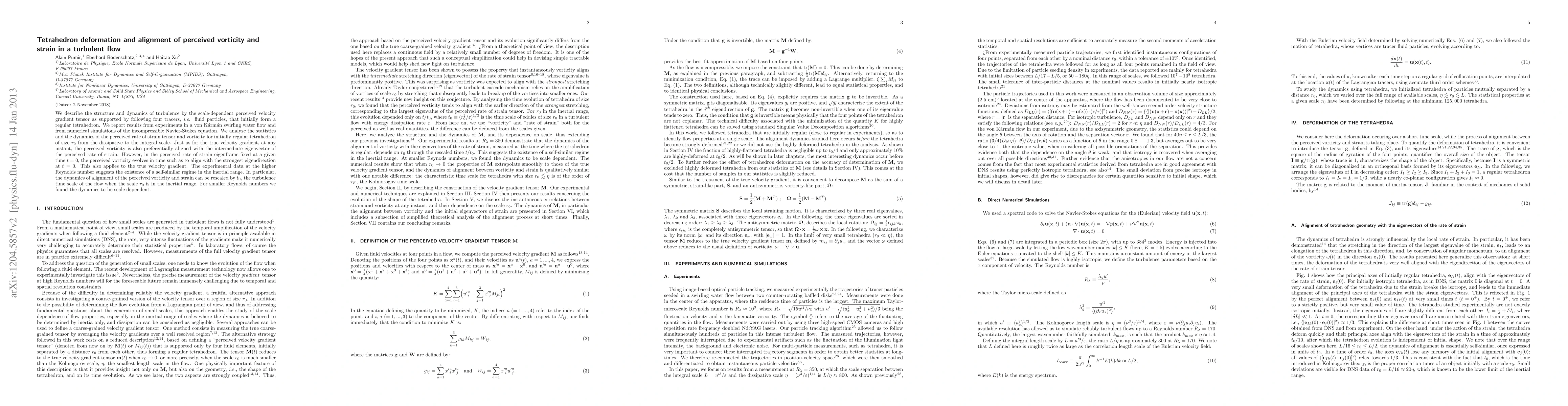 This paper investigates the dynamics of turbulence through the perceived velocity gradient tensor using four tracers forming a tetrahedron. Experimental and numerical results show that perceived vorticity aligns with the intermediate eigenvector of the perceived rate of strain, evolving to align with the strongest eigendirection over time.