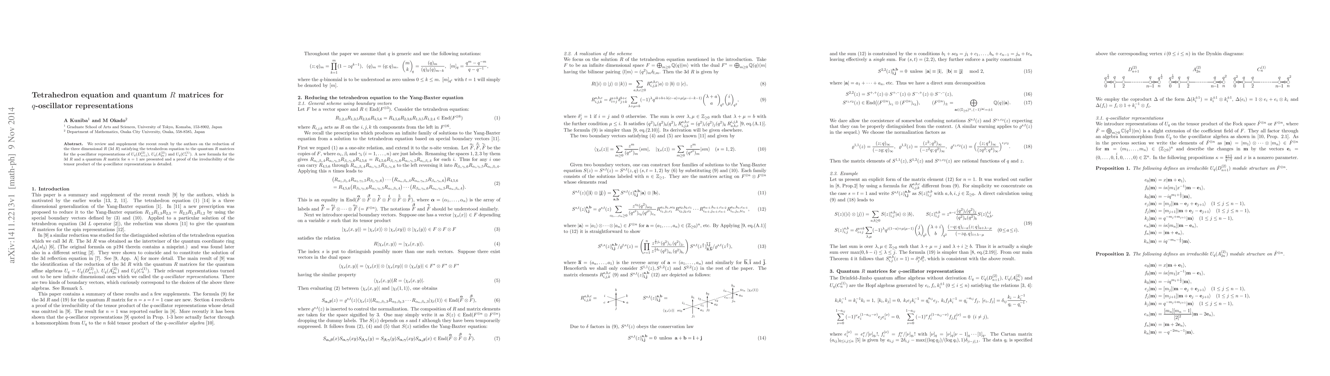 This paper reviews and extends the reduction of the three-dimensional $R$ matrix satisfying the tetrahedron equation to quantum $R$ matrices for $q$-oscillator representations of specific quantum groups. It introduces a new formula for the 3d $R$ matrix and proves the irreducibility of the tensor product for $q$-oscillator representations.