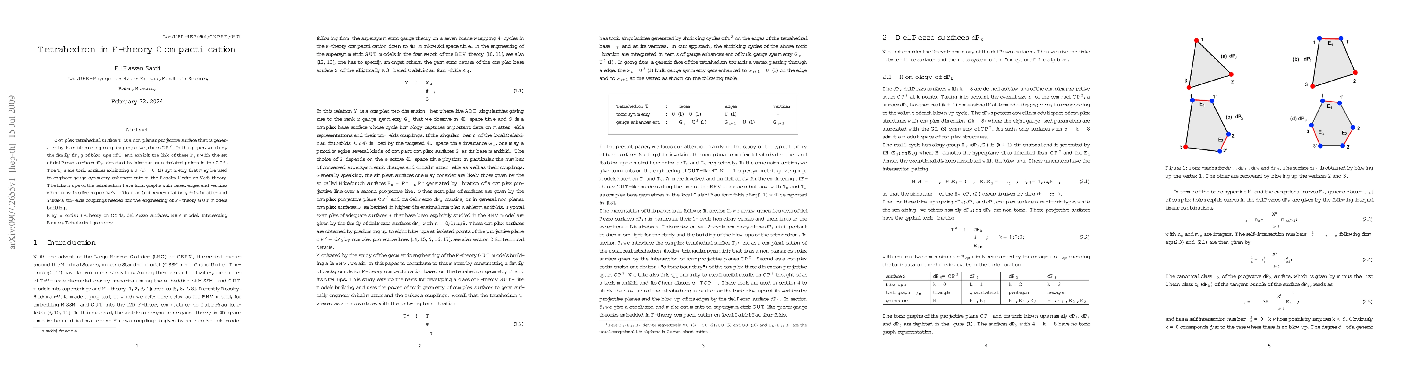 This paper investigates the complex tetrahedral surface $\mathcal{T}$ and its blow-ups $\mathcal{T}_{m}$, linking them to del Pezzo surfaces $dP_{n}$. The $\mathcal{T}_{m}$s exhibit $U(1) \times U(1)$ symmetry, useful for gauge symmetry enhancements in F-theory GUT models.