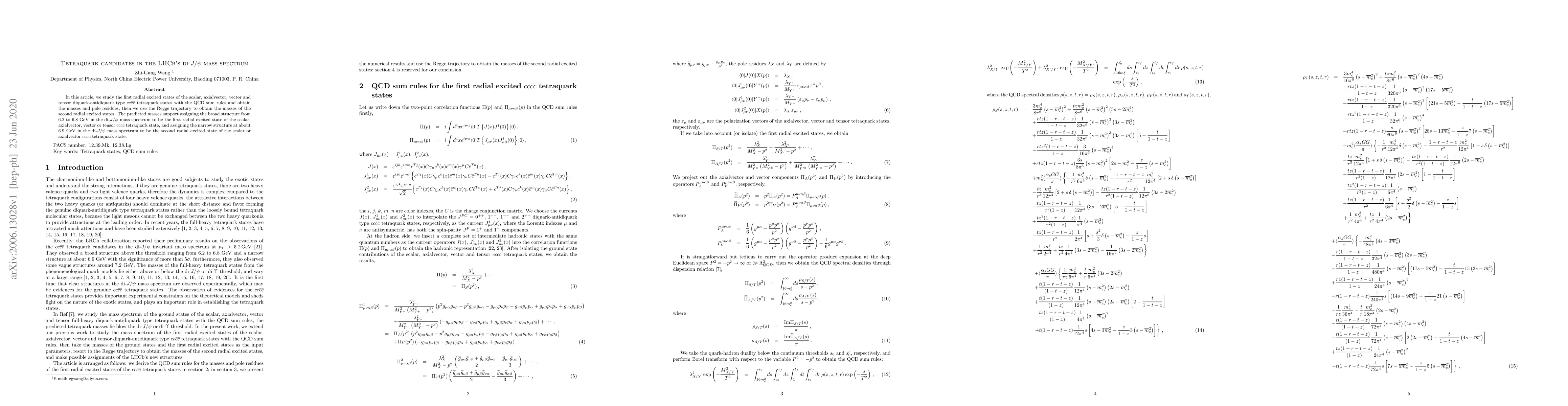 In this article, we study the first radial excited states of the scalar, axialvector, vector and tensor diquark-antidiquark type $cc\bar{c}\bar{c}$ tetraquark states with the QCD sum rules and obtain the masses and pole residues, then we use the Regge trajectory to obtain the masses of the second radial excited states. The predicted masses support assigning the broad structure from 6.2 to 6.8 GeV in the di-$J/\psi$ mass spectrum to be the first radial excited state of the scalar, axialvector, vector or tensor $cc\bar{c}\bar{c}$ tetraquark state, and assigning the narrow structure at about 6.9 GeV in the di-$J/\psi$ mass spectrum to be the second radial excited state of the scalar or axialvector $cc\bar{c}\bar{c}$ tetraquark state.
