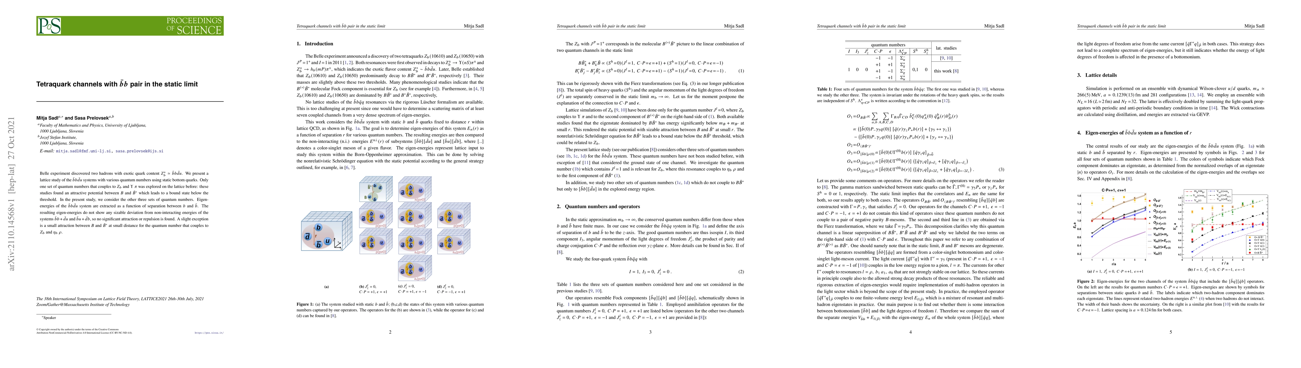 Belle experiment discovered two hadrons with exotic quark content $Z_b^+\simeq \bar bb \bar du$. We present a lattice study of the $\bar bb\bar du$ systems with various quantum numbers using static bottom quarks. Only one set of quantum numbers that couples to $Z_b$ and $\Upsilon\;\pi$ was explored on the lattice before: these studies found an attractive potential between $B$ and $\bar B^*$ which leads to a bound state below the threshold. In the present study, we consider the other three sets of quantum numbers. Eigen-energies of the $\bar bb \bar du$ system are extracted as a function of separation between $b$ and $\bar b$. The resulting eigen-energies do not show any sizable deviation from non-interacting energies of the systems $\bar bb+\bar du$ and $\bar bu+\bar db$, so no significant attraction or repulsion is found. A slight exception is a small attraction between $B$ and $\bar B^*$ at small distance for the quantum number that couples to $Z_b$ and $\eta_b\;\rho$.