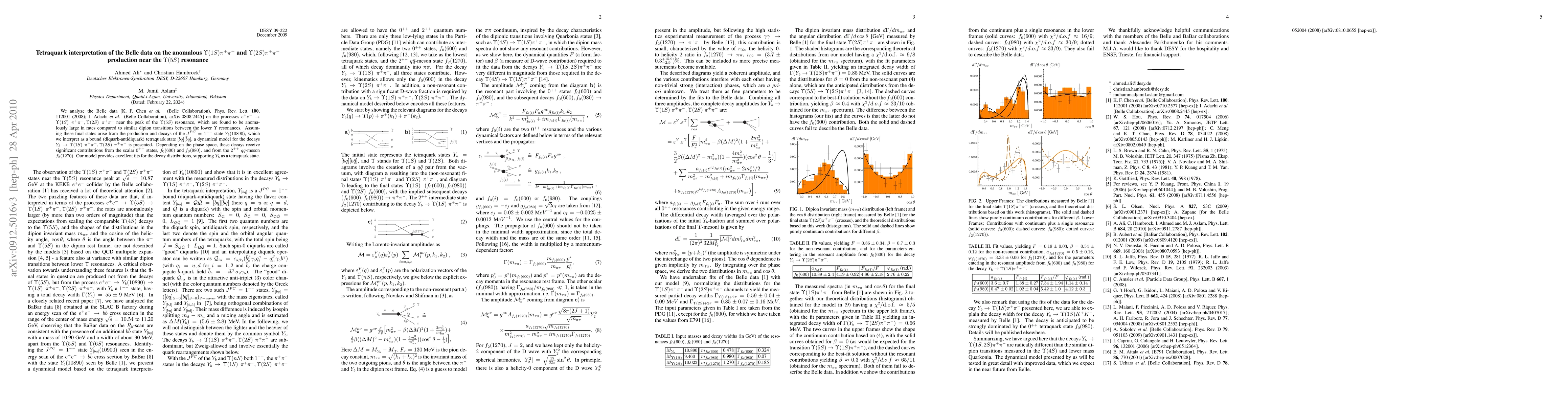 This paper analyzes Belle data on the anomalous production of $\Upsilon(1S) \pi^+\pi^-$ and $\Upsilon(2S) \pi^+\pi^-$ near the $\Upsilon(5S)$ resonance, proposing a tetraquark interpretation of $Y_b(10890)$ as a $[bq][\bar{b}\bar{q}]$ state. The model fits the observed decay distributions well, supporting $Y_b$ as a tetraquark.