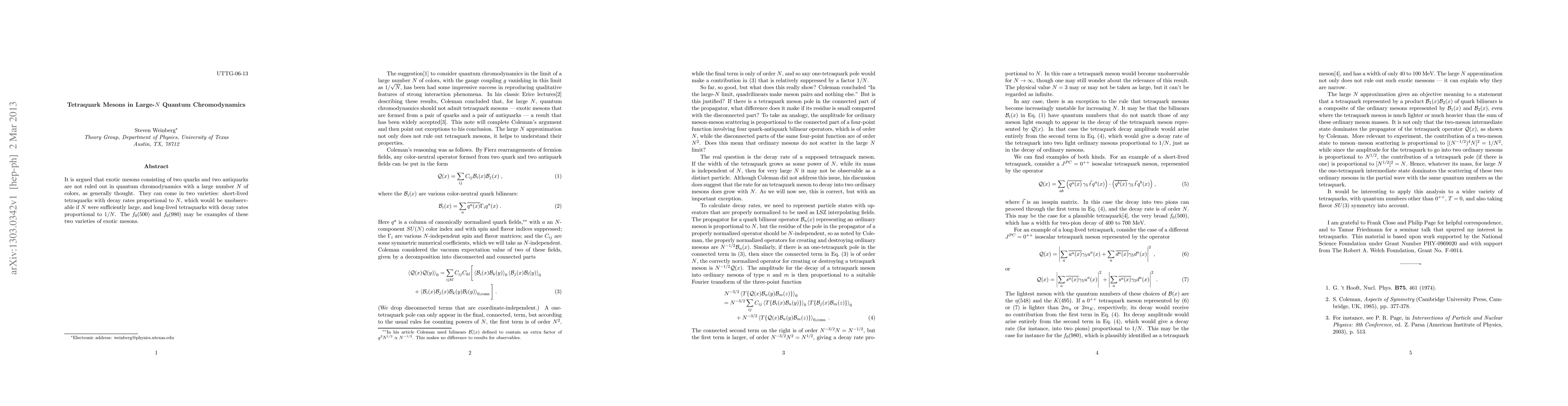 It is argued that exotic mesons consisting of two quarks and two antiquarks are not ruled out in quantum chromodynamics with a large number $N$ of colors, as generally thought. They can come in two varieties: short-lived tetraquarks with decay rates proportional to $N$, which would be unobservable if $N$ were sufficiently large, and long-lived tetraquarks with decay rates proportional to 1/N. The $f_0(500)$ and $f_0(980)$ may be examples of these two varieties of exotic mesons.