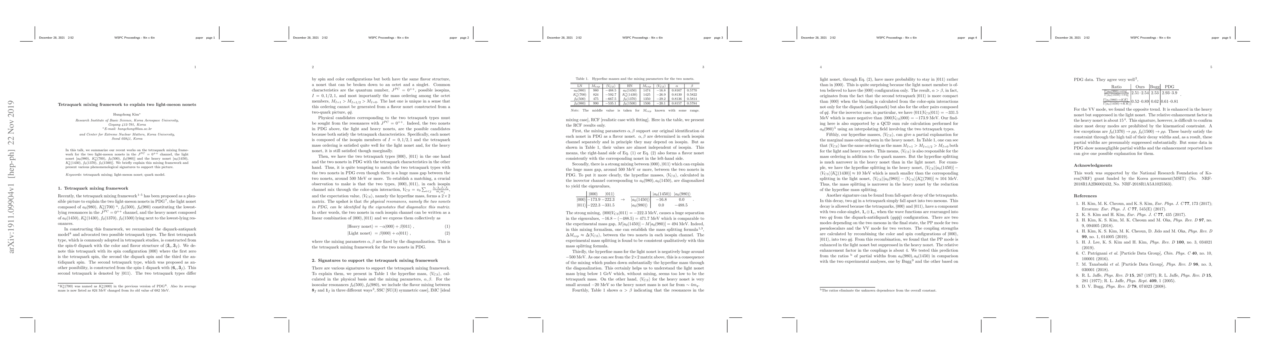 In this talk, we summarize our recent works on the tetraquark mixing framework for the two light-meson nonets in the $J^{PC} = 0^{++}$ channel, the light nonet [$a_0(980)$, $K_0^*(700)$, $f_0(500)$, $f_0(980)$] and the heavy nonet [$a_0(1450)$, $K_0^*(1430)$, $f_0(1370)$, $f_0(1500)$]. We briefly explain this mixing framework and present various phenomenological signatures to support this picture.