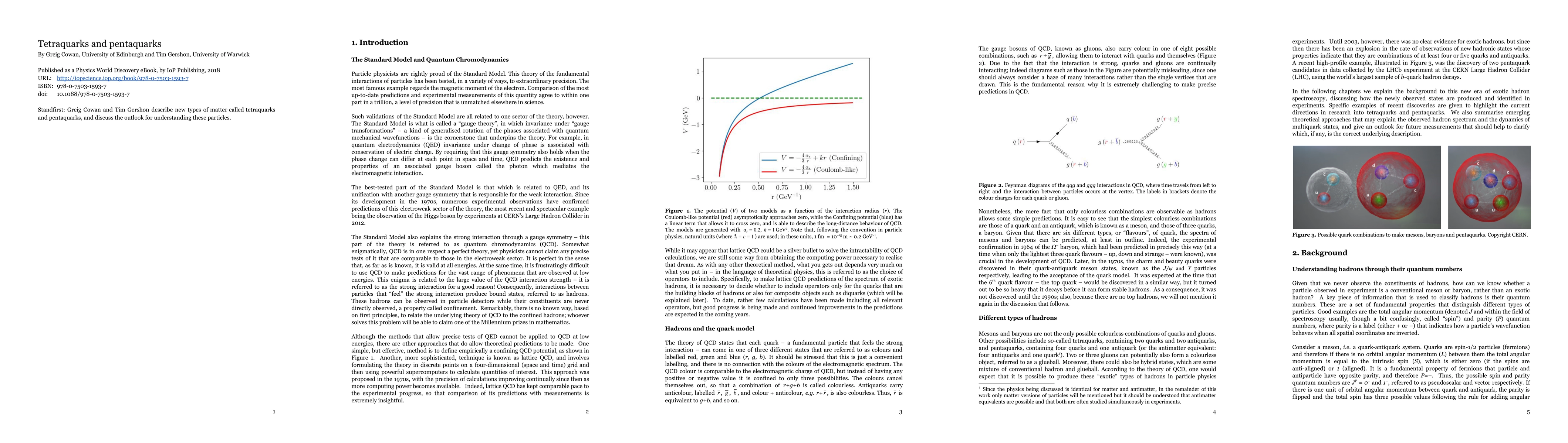 Greig Cowan and Tim Gershon describe new types of matter called tetraquarks and pentaquarks, and discuss the outlook for understanding these particles.