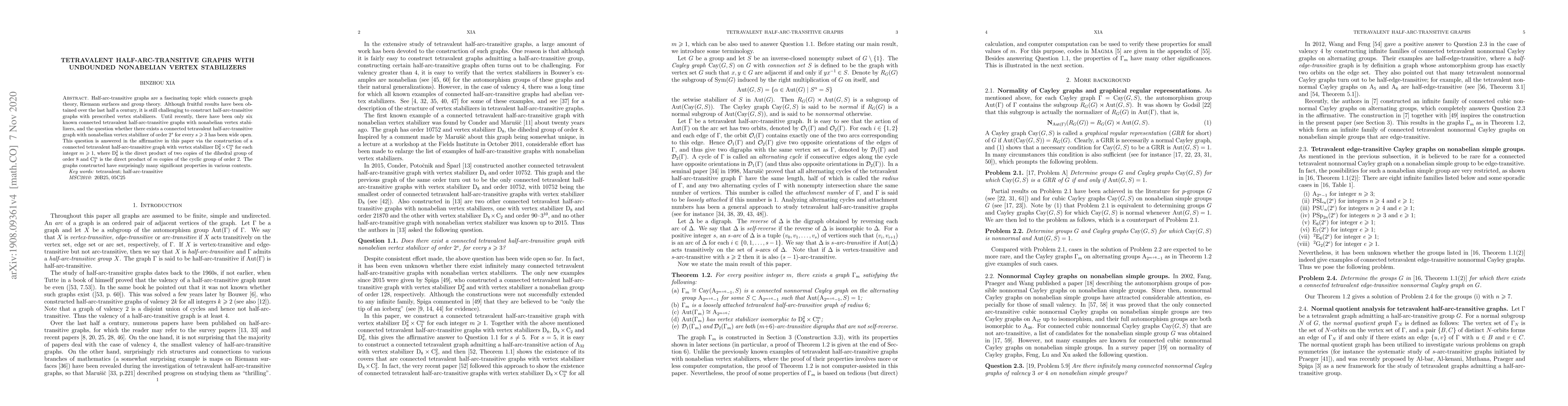 Half-arc-transitive graphs are a fascinating topic which connects graph theory, Riemann surfaces and group theory. Although fruitful results have been obtained over the last half a century, it is still challenging to construct half-arc-transitive graphs with prescribed vertex stabilizers. Until recently, there have been only six known connected tetravalent half-arc-transitive graphs with nonabelian vertex stabilizers, and the question whether there exists a connected tetravalent half-arc-transitive graph with nonabelian vertex stabilizer of order $2^s$ for every $s\geqslant3$ has been wide open. This question is answered in the affirmative in this paper via the construction of a connected tetravalent half-arc-transitive graph with vertex stabilizer $\mathrm{D}_8^2\times\mathrm{C}_2^m$ for each integer $m\geqslant1$, where $\mathrm{D}_8^2$ is the direct product of two copies of the dihedral group of order $8$ and $\mathrm{C}_2^m$ is the direct product of $m$ copies of the cyclic group of order $2$. The graphs constructed have surprisingly many significant properties in various contexts.