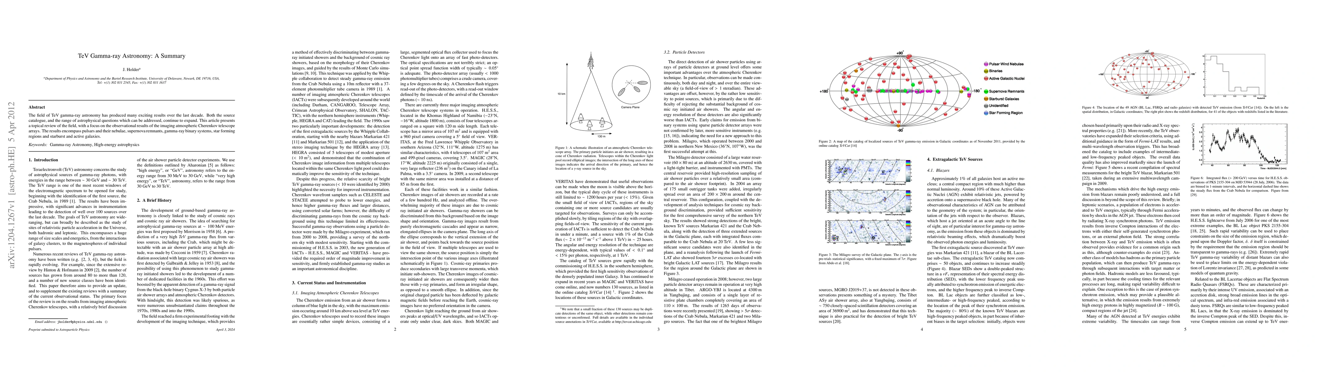 This paper provides a comprehensive review of TeV gamma-ray astronomy, highlighting significant observational results from imaging atmospheric Cherenkov telescope arrays, including findings on pulsars, supernova remnants, gamma-ray binaries, star-forming regions, and active galaxies. The field continues to expand with an increasing source catalogue and broader astrophysical inquiries.