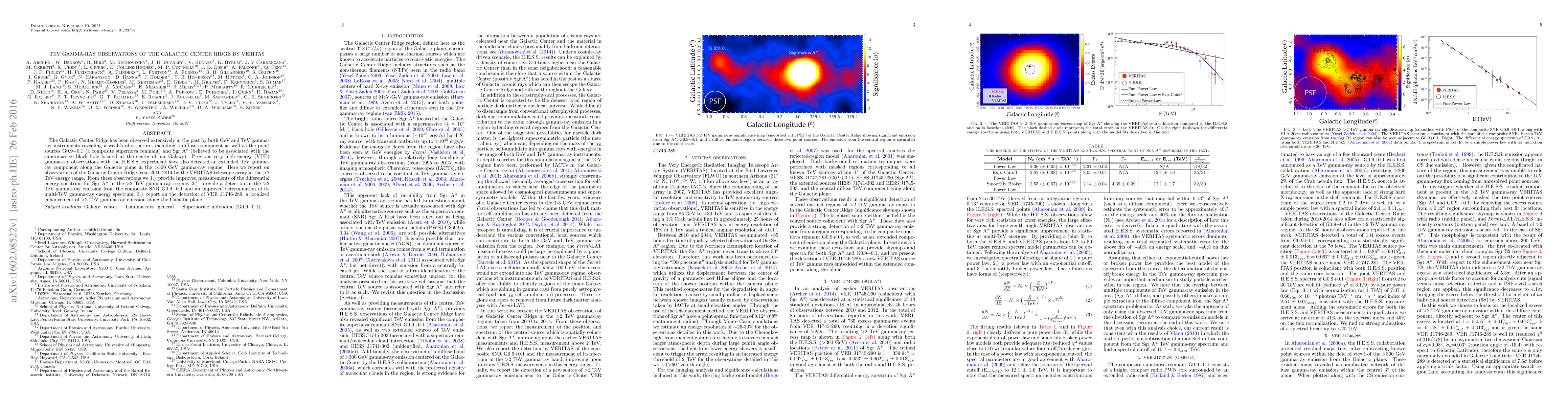 The VERITAS telescope array observed the Galactic Center Ridge from 2010-2014, providing improved spectra for Sgr A* and detecting TeV gamma-ray emission from the composite SNR G0.9+0.1, along with a new localized enhancement VER J1746-289.