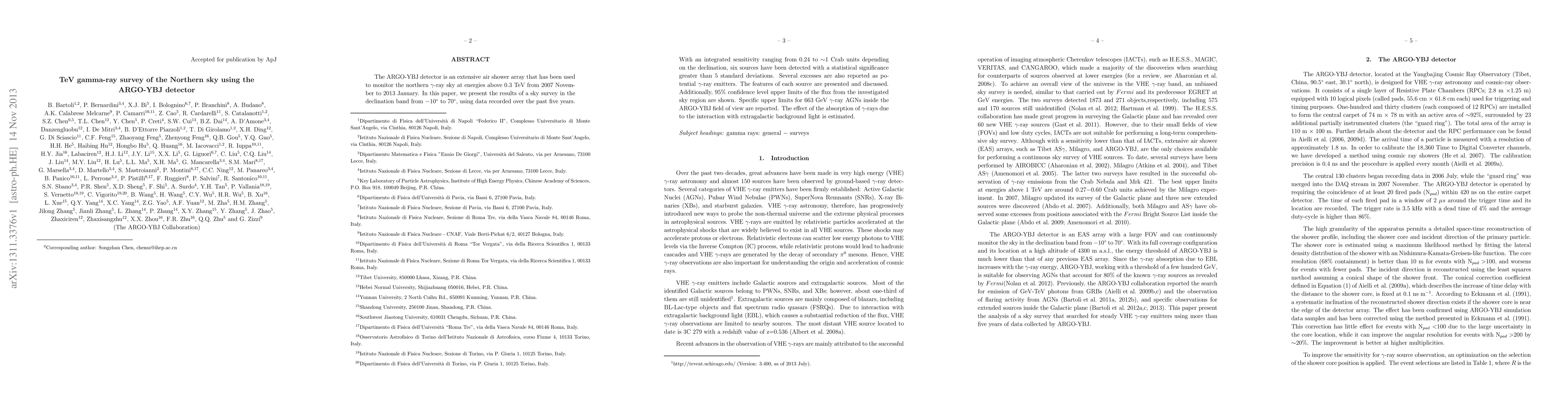 The ARGO-YBJ detector conducted a five-year survey of the northern $\gamma$-ray sky, detecting six sources with significant statistical confidence and reporting potential $\gamma$-ray emitters. The survey also provides upper limits for the flux of $\gamma$-ray AGNs and estimates the impact of extragalactic background light on $\gamma$-ray absorption.