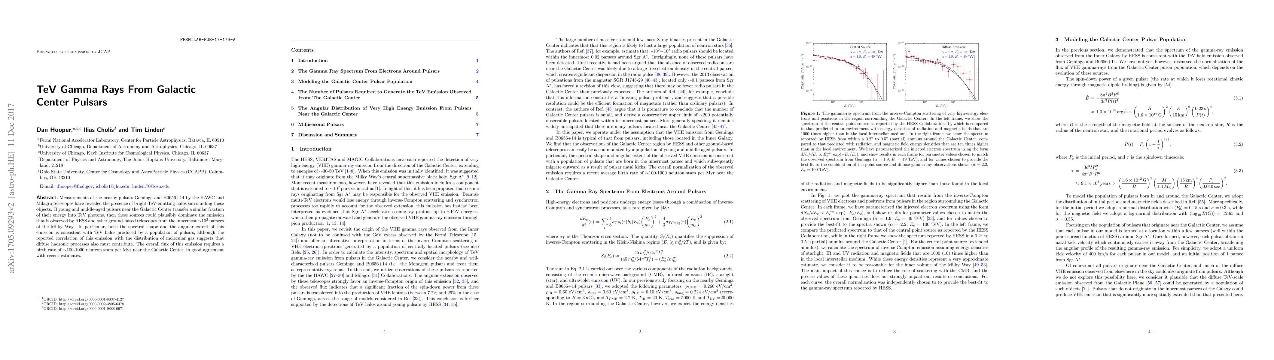 This paper reports that pulsars Geminga and B0656+14 emit bright TeV-gamma rays, suggesting that nearby pulsars could dominate TeV emissions in the Galactic Center. The findings support a population of pulsars contributing to observed TeV halos, though hadronic processes also play a role.