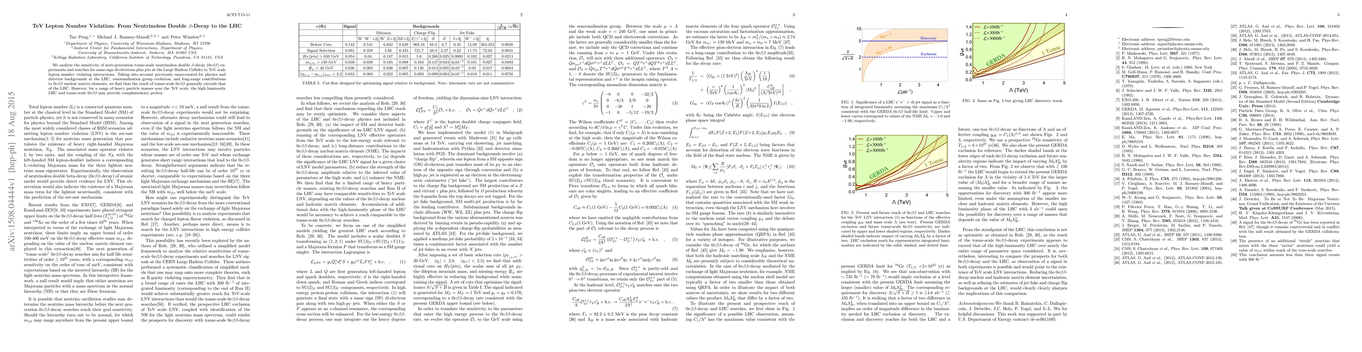 This paper evaluates the sensitivity of neutrinoless double beta decay experiments and LHC searches for TeV scale lepton number violation, finding that while tonne-scale $0\nu\beta\beta$ experiments generally surpass LHC reach, both may complement each other for certain heavy particle masses near the TeV scale.