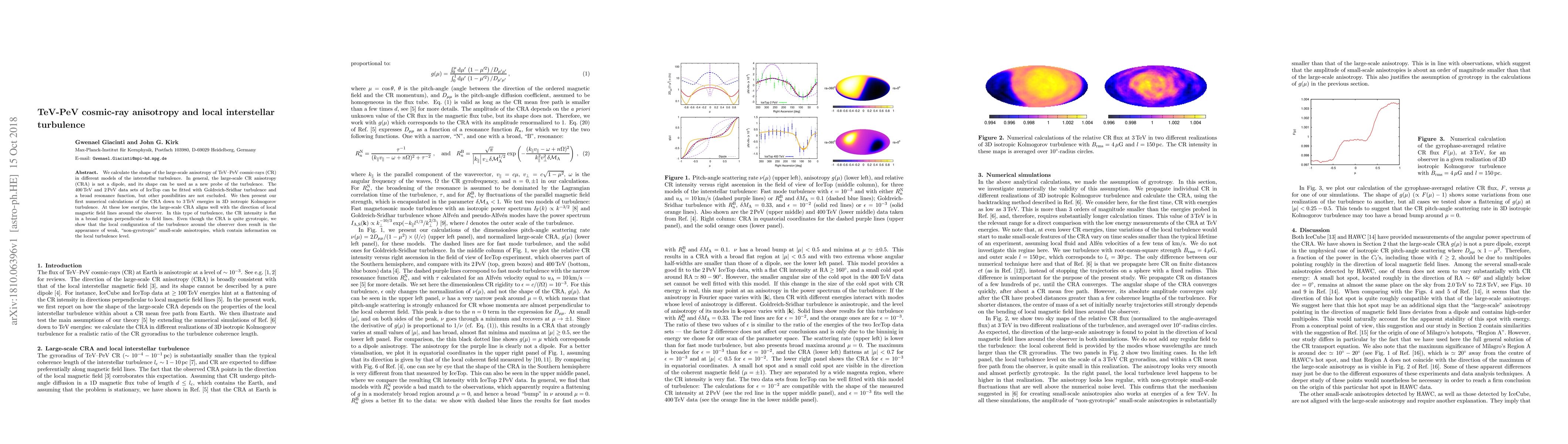 We calculate the shape of the large-scale anisotropy of TeV-PeV cosmic-rays (CR) in different models of the interstellar turbulence. In general, the large-scale CR anisotropy (CRA) is not a dipole, and its shape can be used as a new probe of the turbulence. The 400 TeV and 2 PeV data sets of IceTop can be fitted with Goldreich-Sridhar turbulence and a broad resonance function, but other possibilities are not excluded. We then present our first numerical calculations of the CRA down to 3 TeV energies in 3D isotropic Kolmogorov turbulence. At these low energies, the large-scale CRA aligns well with the direction of local magnetic field lines around the observer. In this type of turbulence, the CR intensity is flat in a broad region perpendicular to field lines. Even though the CRA is quite gyrotropic, we show that the local configuration of the turbulence around the observer does result in the appearance of weak, "non-gyrotropic" small-scale anisotropies, which contain information on the local turbulence level.
