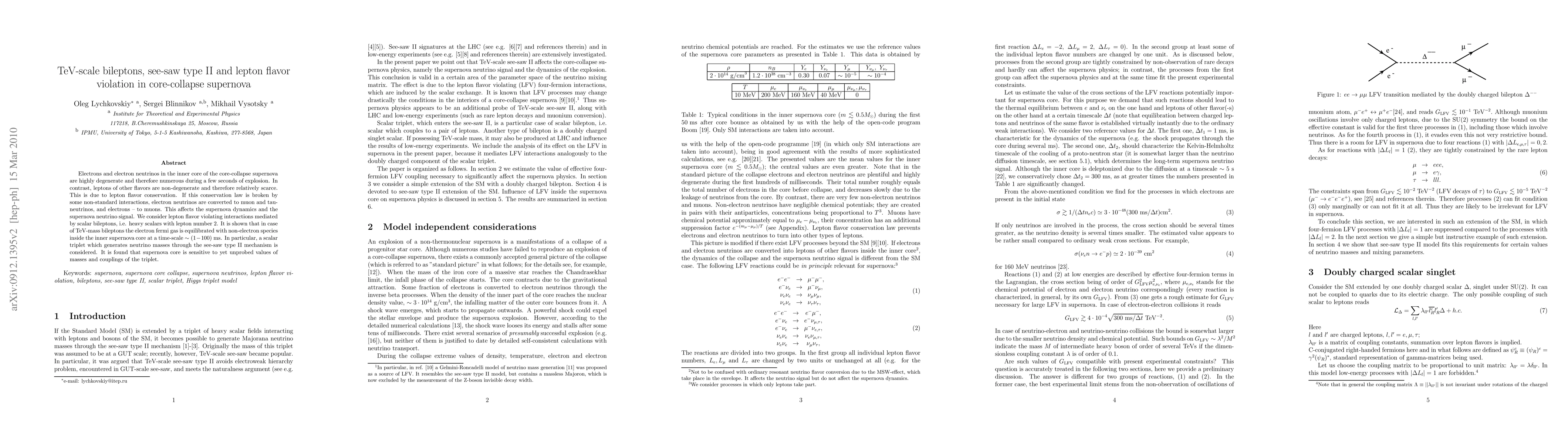 This paper investigates how TeV-scale bileptons can mediate lepton flavor violation in core-collapse supernovae, affecting the dynamics and neutrino signal. It finds that such interactions equilibrate the electron fermi gas with non-electron species within milliseconds, probing unmeasured masses and couplings of bileptons via the see-saw type II mechanism.