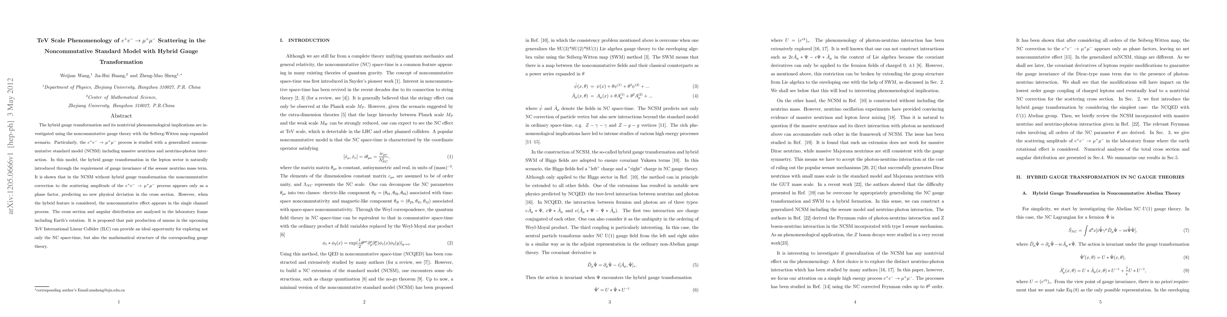 The hybrid gauge transformation and its nontrivial phenomenological implications are investigated using the noncommutative gauge theory with the Seiberg-Witten map expanded scenario. Particularly, the $e^+e^- \to\mu^+ \mu^-$ process is studied with a generalized noncommutative standard model (NCSM) including massive neutrinos and neutrino-photon interaction. In this model, the hybrid gauge transformation in the lepton sector is naturally introduced through the requirement of gauge invariance of the seesaw neutrino mass term. It is shown that in the NCSM without hybrid gauge transformation the noncommutative correction to the scattering amplitude of the $e^+e^- \to\mu^+ \mu^-$ process appears only as a phase factor, predicting no new physical deviation in the cross section. However, when the hybrid feature is considered, the noncommutative effect appears in the single channel process. The cross section and angular distribution are analyzed in the laboratory frame including Earth's rotation. It is proposed that pair production of muons in the upcoming TeV International Linear Collider (ILC) can provide an ideal opportunity for exploring not only the NC space-time, but also the mathematical structure of the corresponding gauge theory.