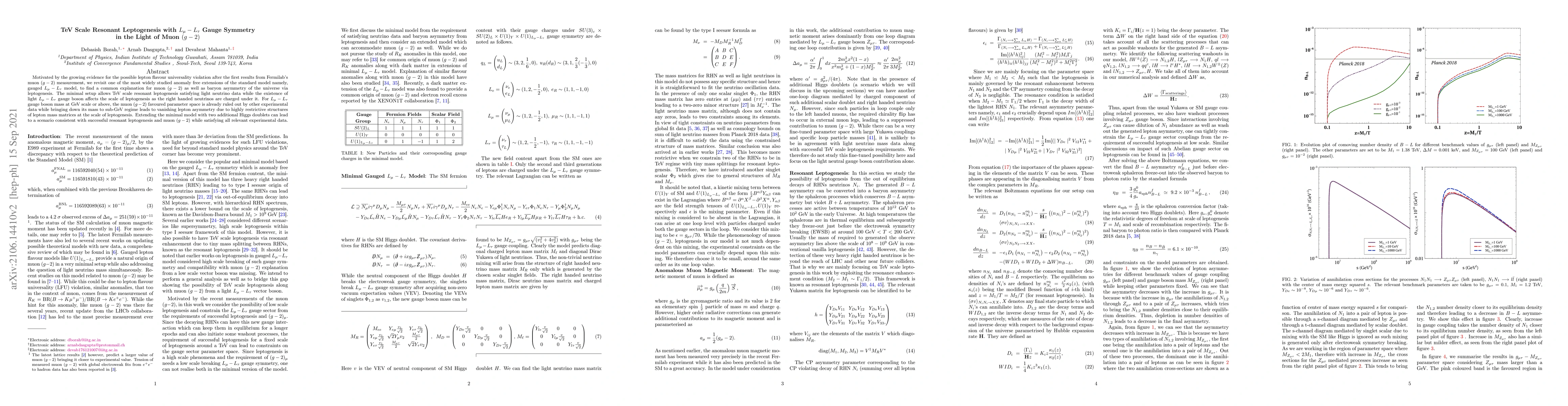 This paper explores the gauged $L_{\mu}-L_{\tau}$ model to explain the muon $(g-2)$ anomaly and generate the universe's baryon asymmetry through resonant leptogenesis at the TeV scale. Extending the minimal model with two additional Higgs doublets reconciles these phenomena while adhering to experimental constraints.