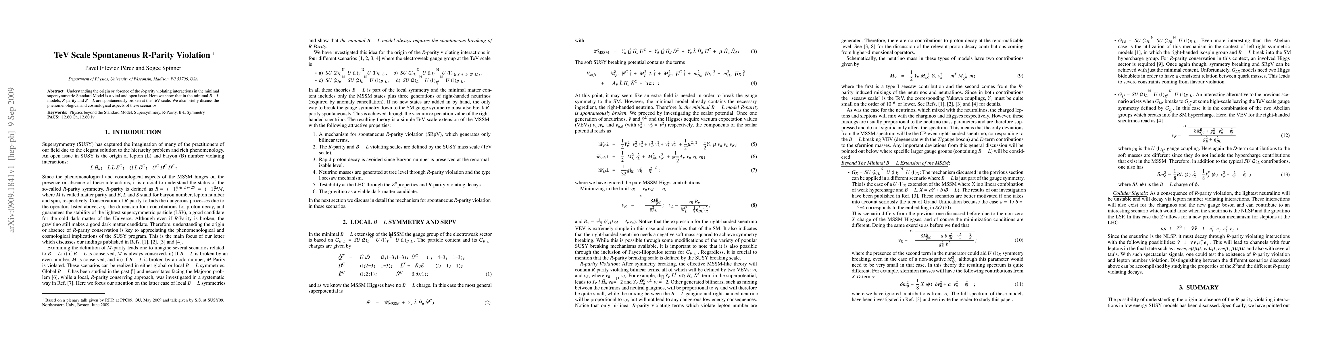 This paper explores the spontaneous breaking of R-parity and B-L symmetry at the TeV scale in minimal B-L models, addressing an open issue in the minimal supersymmetric Standard Model, and briefly examines the associated phenomenological and cosmological implications.