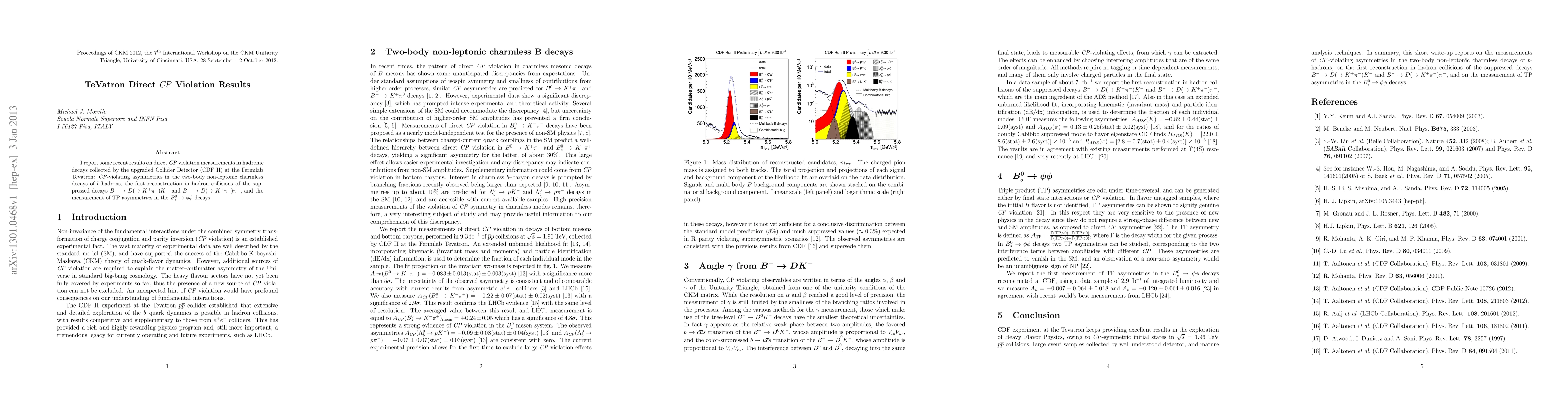 This paper presents recent findings on direct CP violation from the CDF II detector at Fermilab Tevatron, including asymmetries in $b$-hadron decays, first observations of suppressed decays $B^- \to D(\to K^+\pi^-)K^-$ and $B^- \to D(\to K^+\pi^-)\pi^-$, and TP asymmetries in $B^{0}_{s} \to \phi \phi$ decays.