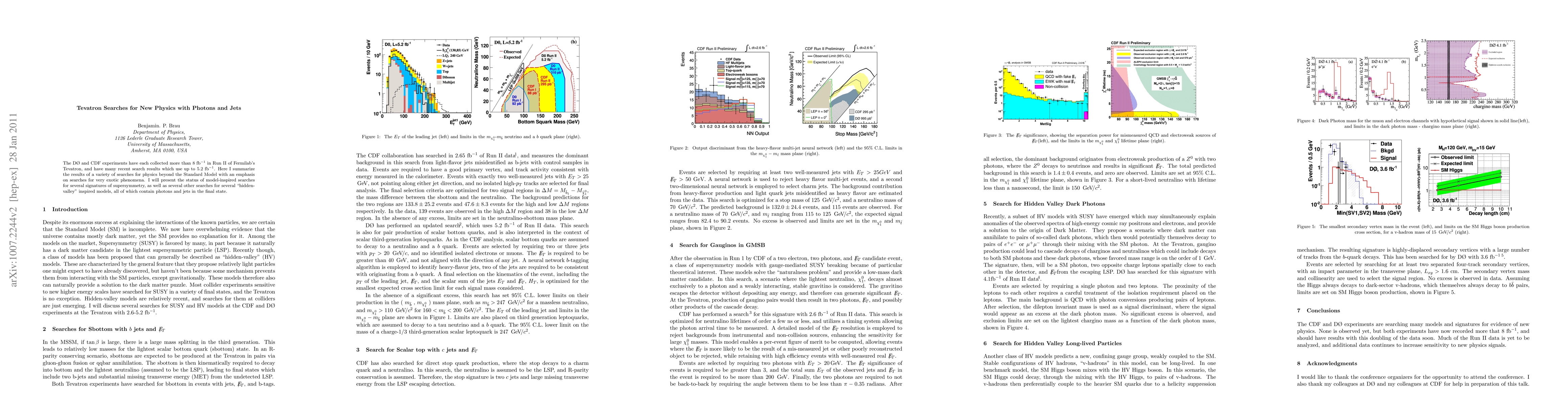 The research utilized data from Fermilab's Tevatron, collected by the DØ and CDF experiments in Run II, amounting to over 8 fb^-1. It focused on searches for new physics beyond the Standard Model, specifically exotic phenomena involving photons and jets in the final state. The methodology included model-inspired searches for supersymmetry signatures and other 'hidden-valley' inspired models.