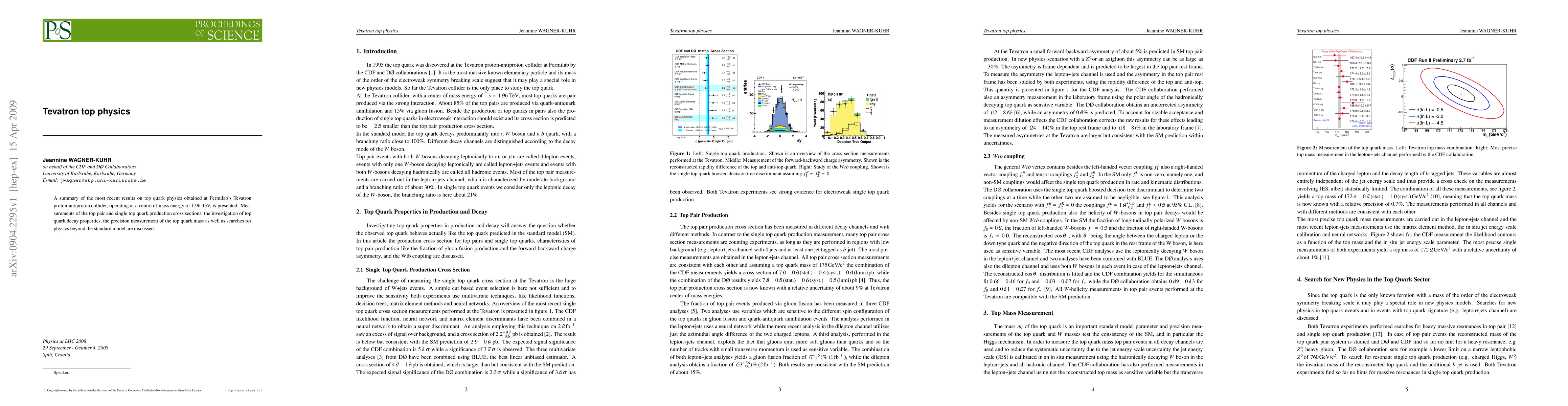 This paper summarizes recent findings on top quark physics from Fermilab's Tevatron, including measurements of top pair and single top quark production, investigations into top quark decay properties, precise top quark mass measurements, and searches for physics beyond the Standard Model.