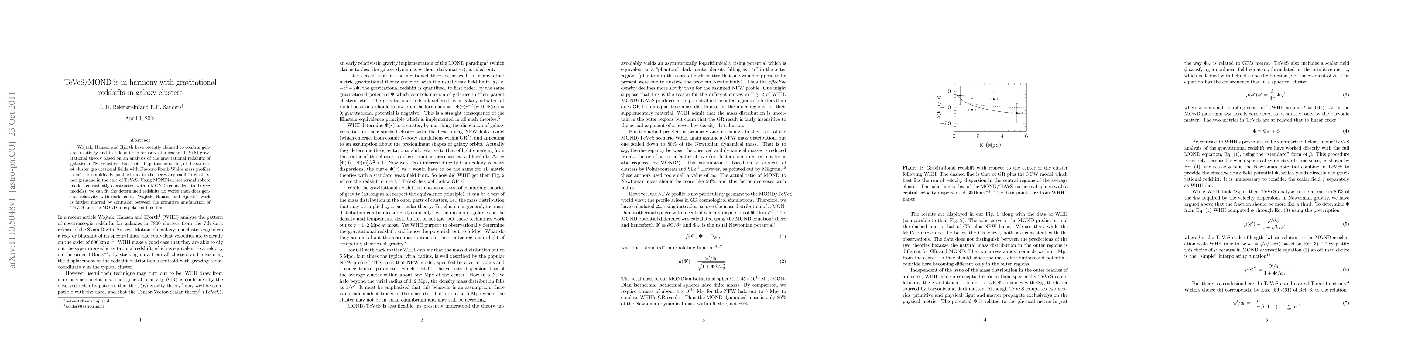 Wojtak, Hansen and Hjorth have recently claimed to confirm general relativity and to rule out the tensor-vector-scalar (TeVeS) gravitational theory based on an analysis of the gravitational redshifts of galaxies in 7800 clusters. But their ubiquitous modeling of the sources of cluster gravitational fields with Navarro-Frenk-White mass profiles is neither empirically justified out to the necessary radii in clusters, nor germane in the case of TeVeS. Using MONDian isothermal sphere models consistently constructed within MOND (equivalent to TeVeS models), we can fit the determined redshifts no worse than does general relativity with dark halos. Wojtak, Hansen and Hjorth's work is further marred by confusion between the primitive mu-function of TeVeS and the MOND interpolation function.