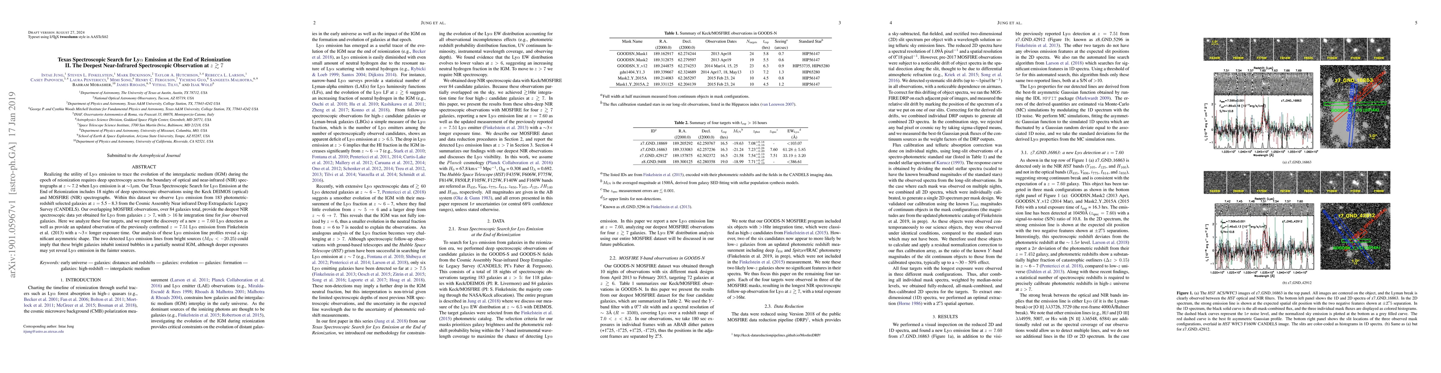 Researchers conducted the deepest near-infrared spectroscopic observation of Ly$eta$ emission at $z > 7$, discovering a new detection at $z = 7.60$ with deeper exposure times.