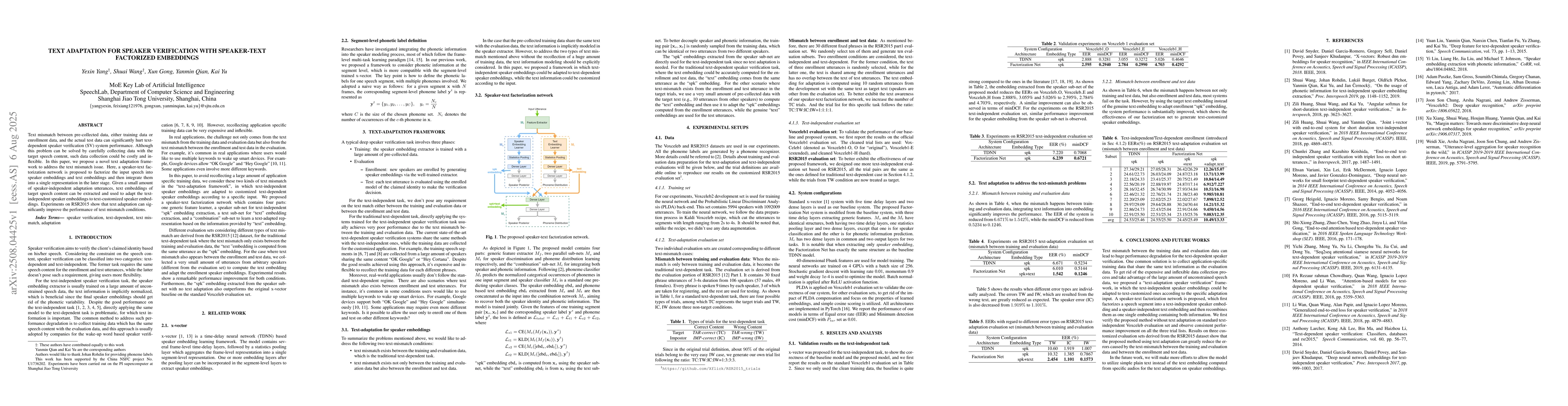 The paper proposes a speaker-text factorization network to address text mismatch issues in text-dependent speaker verification systems. This network factorizes input speech into speaker and text embeddings, integrating them into a single representation for improved performance with minimal adaptation data.