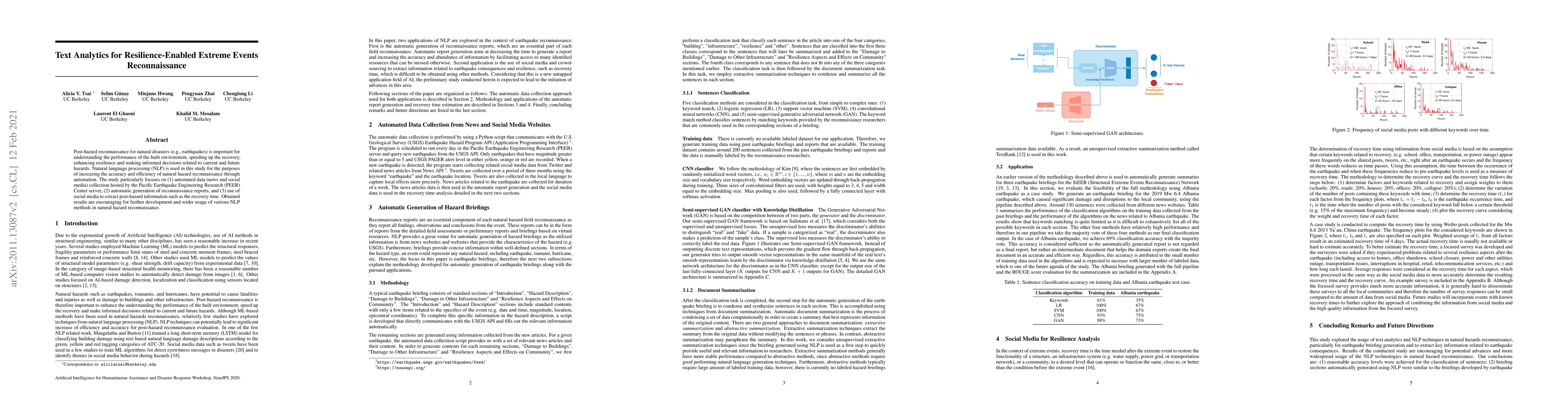 Post-hazard reconnaissance for natural disasters (e.g., earthquakes) is important for understanding the performance of the built environment, speeding up the recovery, enhancing resilience and making informed decisions related to current and future hazards. Natural language processing (NLP) is used in this study for the purposes of increasing the accuracy and efficiency of natural hazard reconnaissance through automation. The study particularly focuses on (1) automated data (news and social media) collection hosted by the Pacific Earthquake Engineering Research (PEER) Center server, (2) automatic generation of reconnaissance reports, and (3) use of social media to extract post-hazard information such as the recovery time. Obtained results are encouraging for further development and wider usage of various NLP methods in natural hazard reconnaissance.